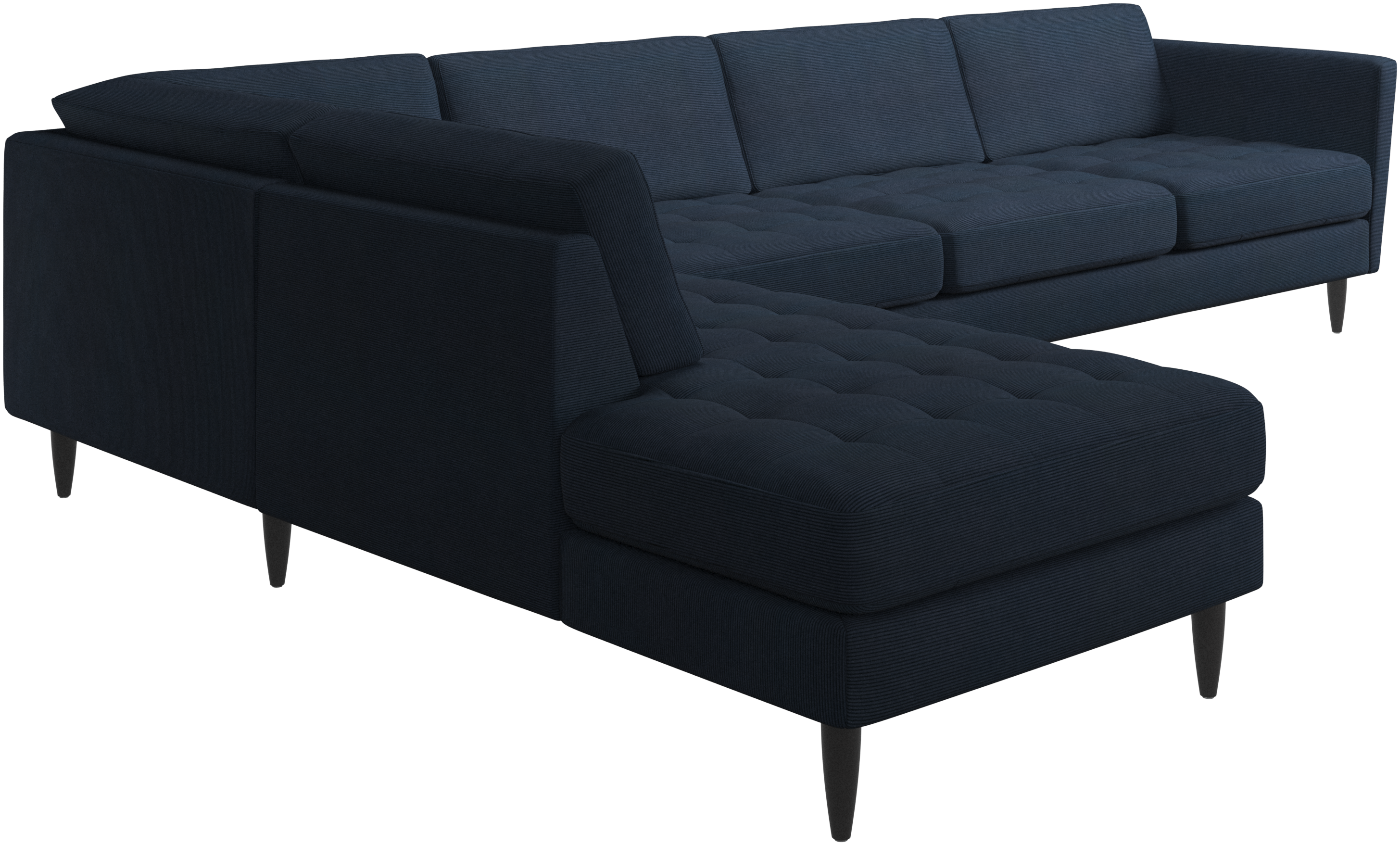 A light look and slim proportions make the Osaka sofa perfect for small homes, while a subtle feminine look and a touch of 60s design ensure that the Osaka sofa still packs a style punch. The beautiful tufted seats add visual softness and bring a classic look to your living room. Inclined armrests give the sofa a modern, unique look and open it up to the rest of the room. With plenty of room for the entire family this corner sofa will be the hero of your living room. The open end will create a dynamic, welcoming atmosphere - a true blessing for the integrated areas of open-plan living. Put your feet up, stretch out or use it as an extra seat – you won’t be sorry for choosing this comfortable chaise longue sofa.