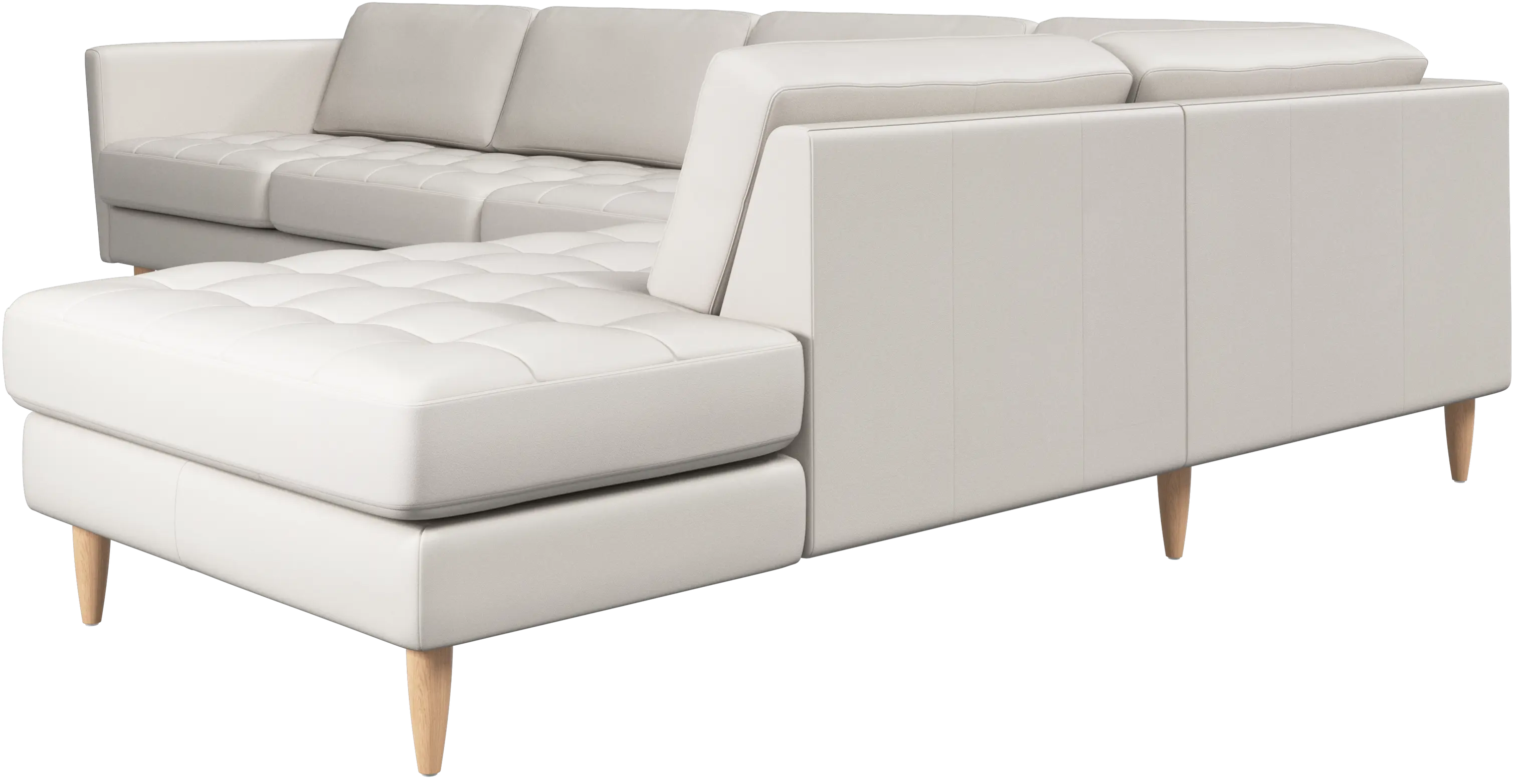 A light look and slim proportions make the Osaka sofa perfect for small homes, while a subtle feminine look and a touch of 60s design ensure that the Osaka sofa still packs a style punch. The beautiful tufted seats add visual softness and bring a classic look to your living room. Inclined armrests give the sofa a modern, unique look and open it up to the rest of the room. With plenty of room for the entire family this corner sofa will be the hero of your living room. The open end will create a dynamic, welcoming atmosphere - a true blessing for the integrated areas of open-plan living. Put your feet up, stretch out or use it as an extra seat – you won’t be sorry for choosing this comfortable chaise longue sofa.