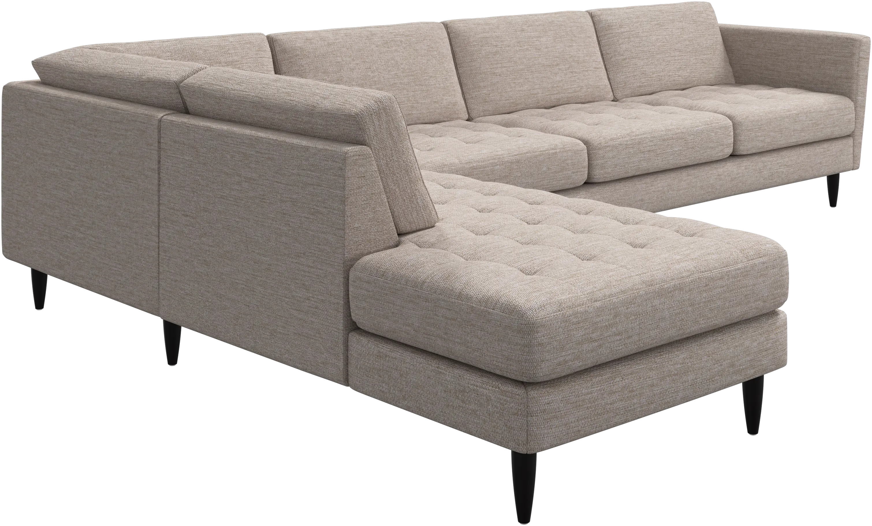 A light look and slim proportions make the Osaka sofa perfect for small homes, while a subtle feminine look and a touch of 60s design ensure that the Osaka sofa still packs a style punch. The beautiful tufted seats add visual softness and bring a classic look to your living room. Inclined armrests give the sofa a modern, unique look and open it up to the rest of the room. With plenty of room for the entire family this corner sofa will be the hero of your living room. The open end will create a dynamic, welcoming atmosphere - a true blessing for the integrated areas of open-plan living. Put your feet up, stretch out or use it as an extra seat – you won’t be sorry for choosing this comfortable chaise longue sofa.