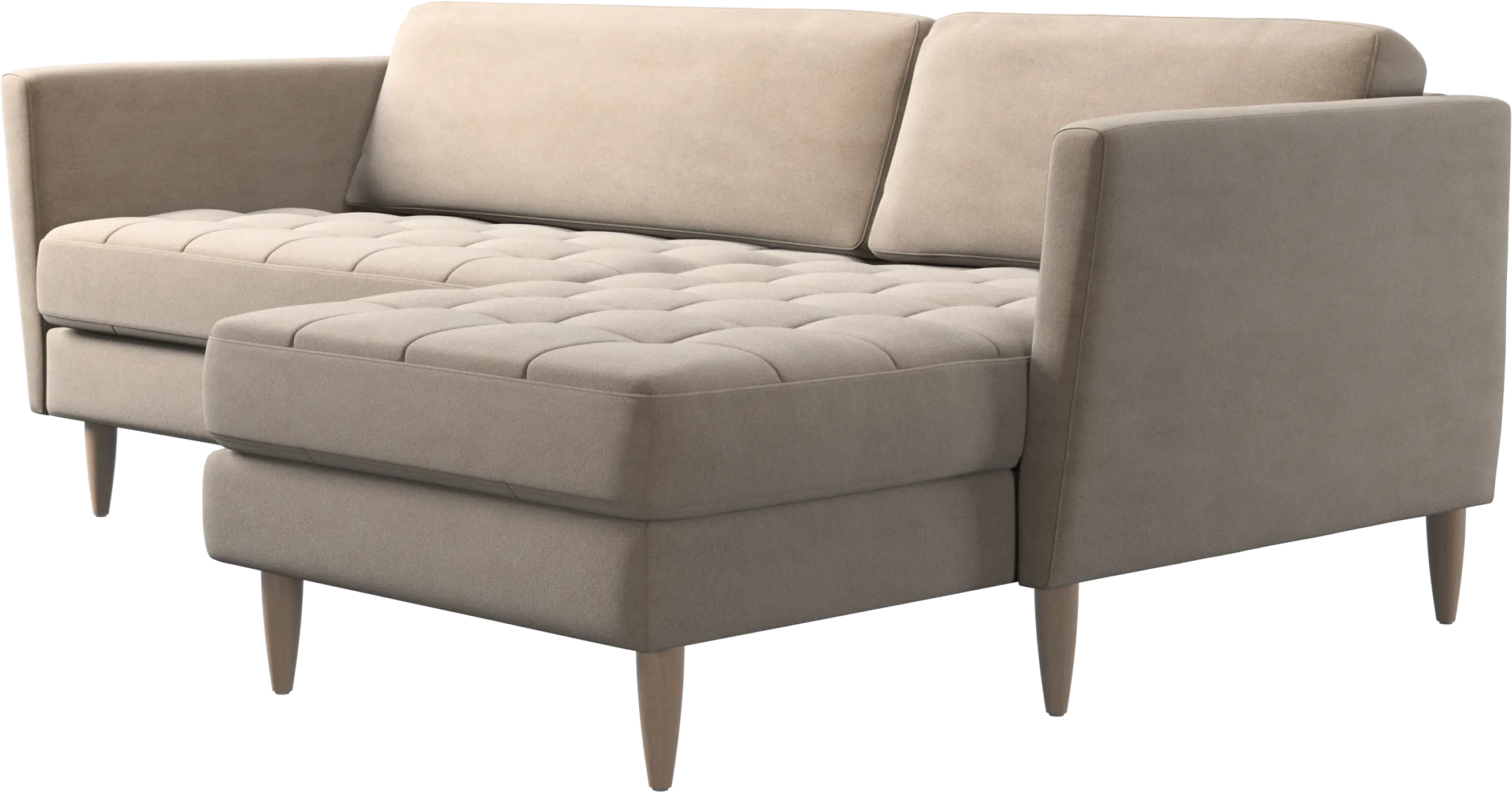 A light look and slim proportions make the Osaka sofa perfect for small homes, while a subtle feminine look and a touch of 60s design ensure that the Osaka sofa still packs a style punch. The beautiful tufted seats add visual softness and bring a classic look to your living room. Inclined armrests give the sofa a modern, unique look and open it up to the rest of the room. Put your feet up, stretch out or use it as an extra seat – you won’t be sorry for choosing this comfortable chaise longue sofa.