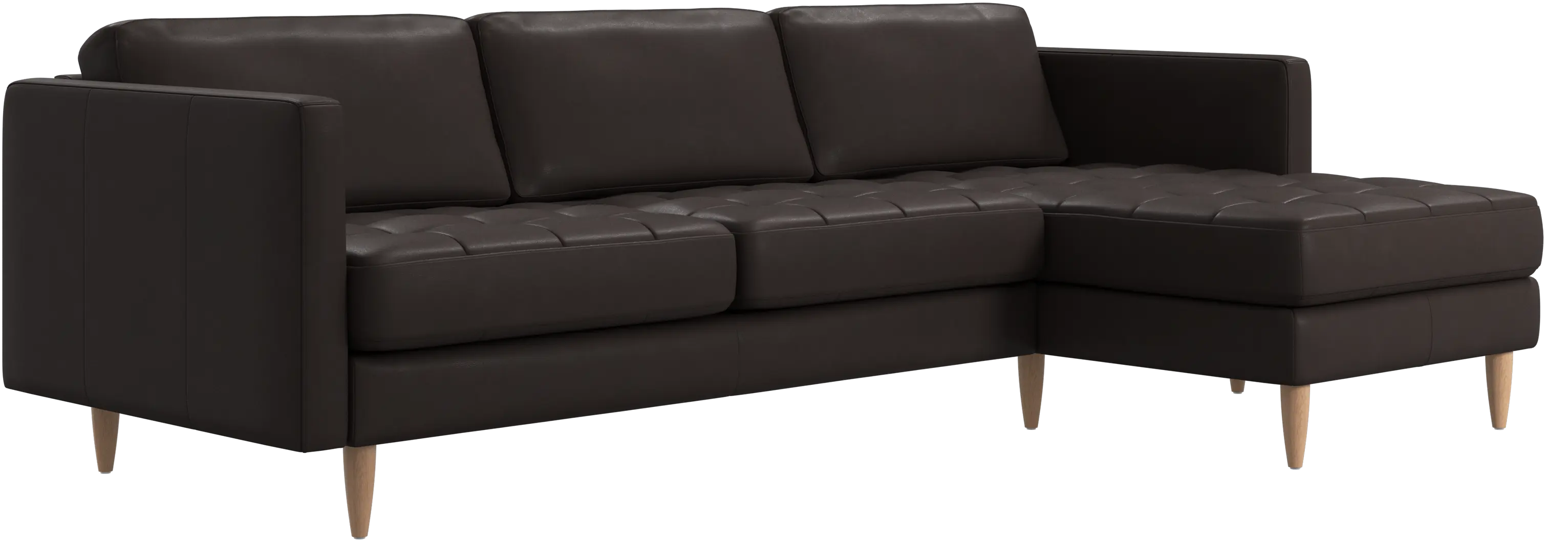 A light look and slim proportions make the Osaka sofa perfect for small homes, while a subtle feminine look and a touch of 60s design ensure that the Osaka sofa still packs a style punch. The beautiful tufted seats add visual softness and bring a classic look to your living room. The classic, straight armrests emphasise the clean lines and Scandinavian look. Put your feet up, stretch out or use it as an extra seat – you won’t be sorry for choosing this comfortable chaise longue sofa.