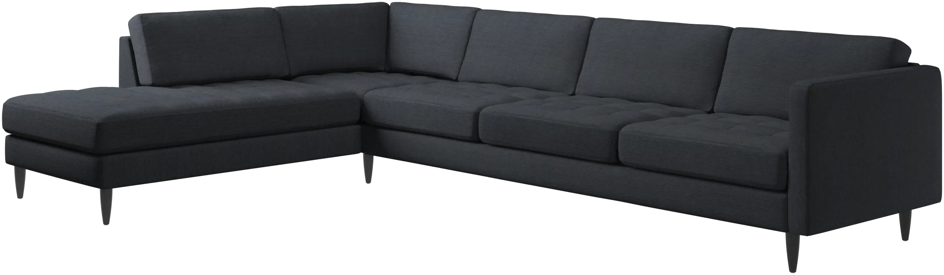 A light look and slim proportions make the Osaka sofa perfect for small homes, while a subtle feminine look and a touch of 60s design ensure that the Osaka sofa still packs a style punch. The beautiful tufted seats add visual softness and bring a classic look to your living room. The classic, straight armrests emphasise the clean lines and Scandinavian look. With plenty of room for the entire family this corner sofa will be the hero of your living room. The open end will create a dynamic, welcoming atmosphere - a true blessing for the integrated areas of open-plan living. Put your feet up, stretch out or use it as an extra seat – you won’t be sorry for choosing this comfortable chaise longue sofa.