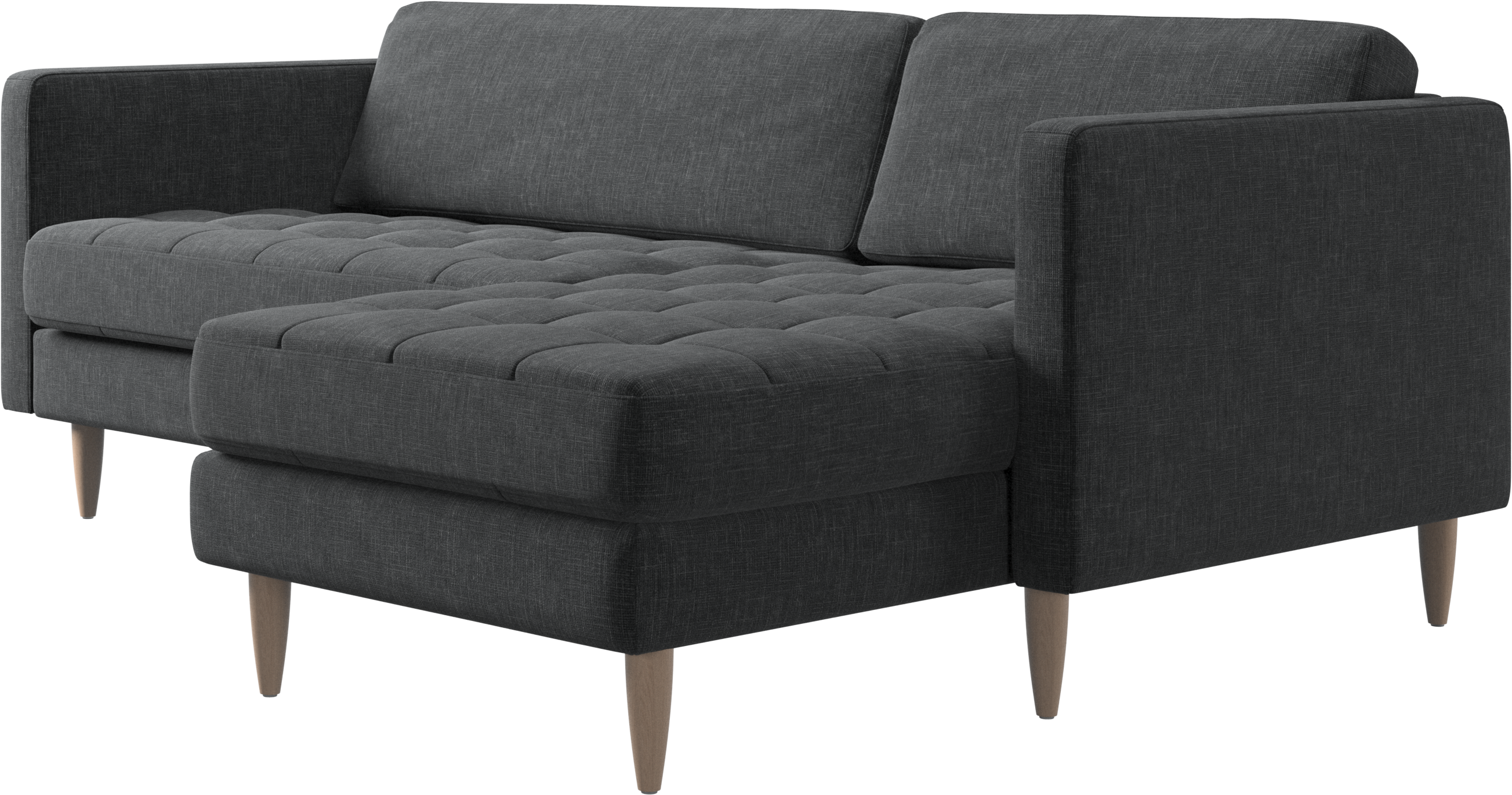 A light look and slim proportions make the Osaka sofa perfect for small homes, while a subtle feminine look and a touch of 60s design ensure that the Osaka sofa still packs a style punch. The beautiful tufted seats add visual softness and bring a classic look to your living room. The classic, straight armrests emphasise the clean lines and Scandinavian look. Put your feet up, stretch out or use it as an extra seat – you won’t be sorry for choosing this comfortable chaise longue sofa.