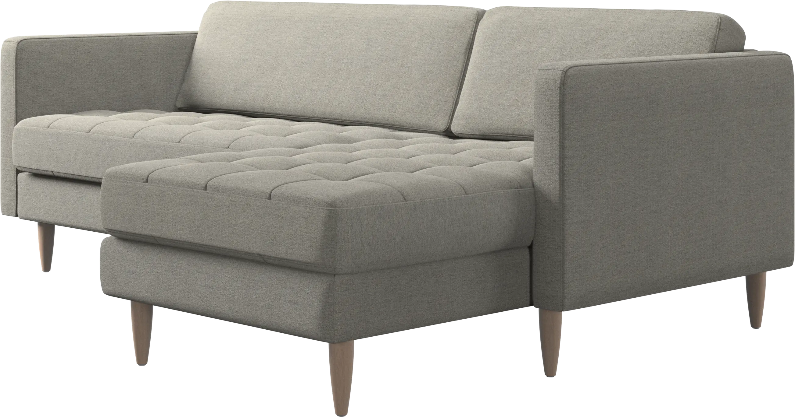 A light look and slim proportions make the Osaka sofa perfect for small homes, while a subtle feminine look and a touch of 60s design ensure that the Osaka sofa still packs a style punch. The beautiful tufted seats add visual softness and bring a classic look to your living room. The classic, straight armrests emphasise the clean lines and Scandinavian look. Put your feet up, stretch out or use it as an extra seat – you won’t be sorry for choosing this comfortable chaise longue sofa.