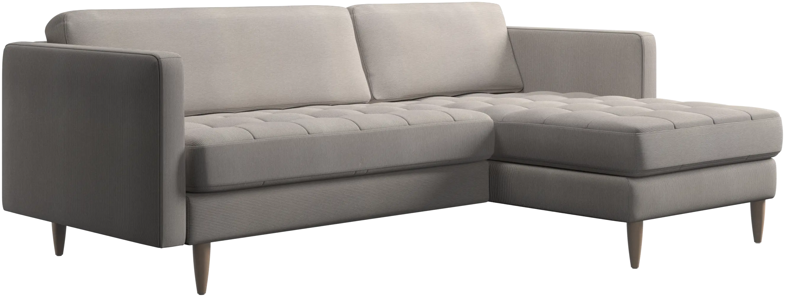 A light look and slim proportions make the Osaka sofa perfect for small homes, while a subtle feminine look and a touch of 60s design ensure that the Osaka sofa still packs a style punch. The beautiful tufted seats add visual softness and bring a classic look to your living room. The classic, straight armrests emphasise the clean lines and Scandinavian look. Put your feet up, stretch out or use it as an extra seat – you won’t be sorry for choosing this comfortable chaise longue sofa.