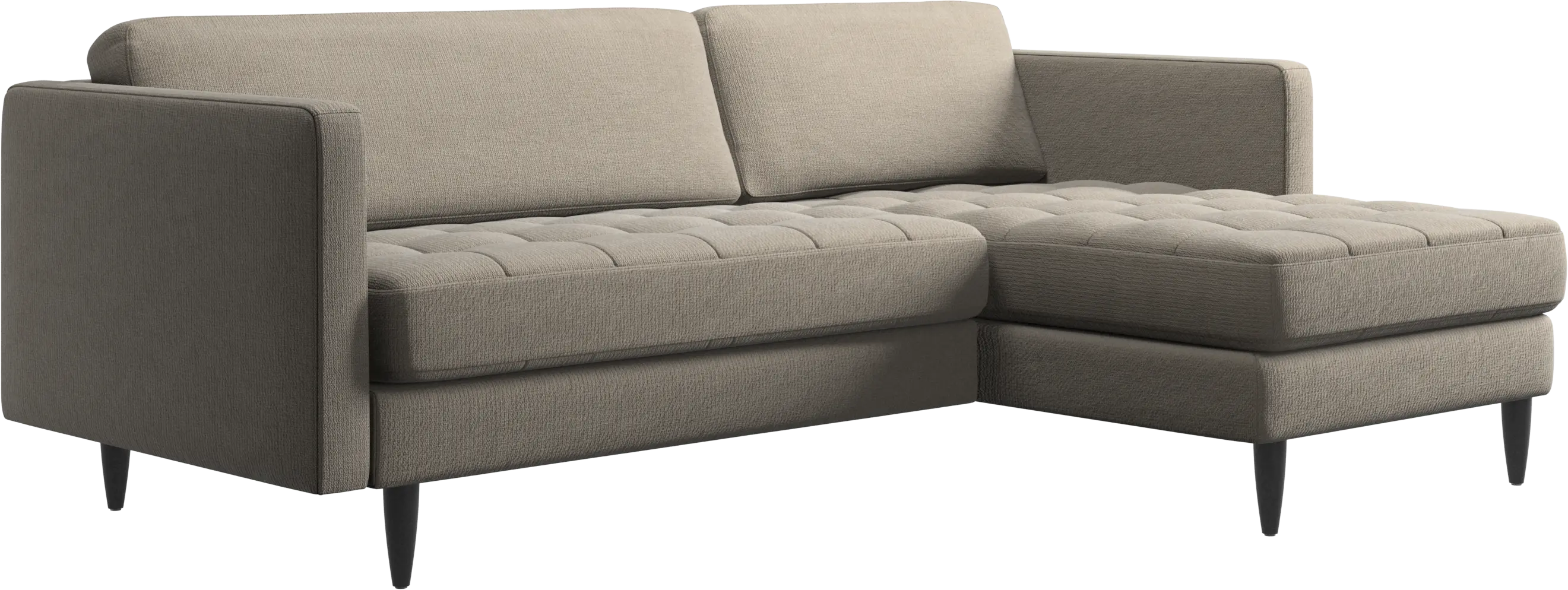 A light look and slim proportions make the Osaka sofa perfect for small homes, while a subtle feminine look and a touch of 60s design ensure that the Osaka sofa still packs a style punch. The beautiful tufted seats add visual softness and bring a classic look to your living room. The classic, straight armrests emphasise the clean lines and Scandinavian look. Put your feet up, stretch out or use it as an extra seat – you won’t be sorry for choosing this comfortable chaise longue sofa.