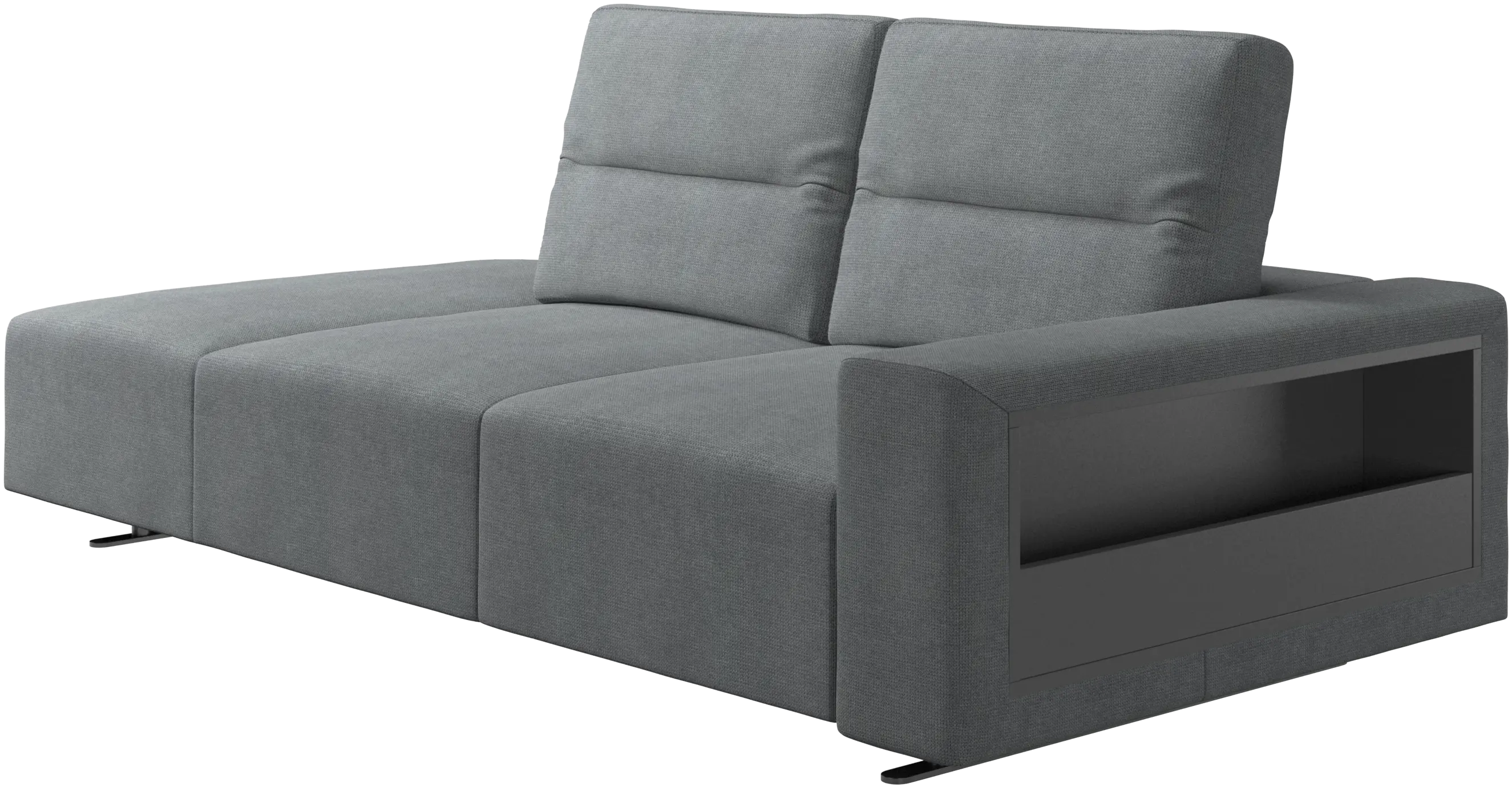 Hampton sofa with adjustable back and lounging unit left side, storage and armrest right side