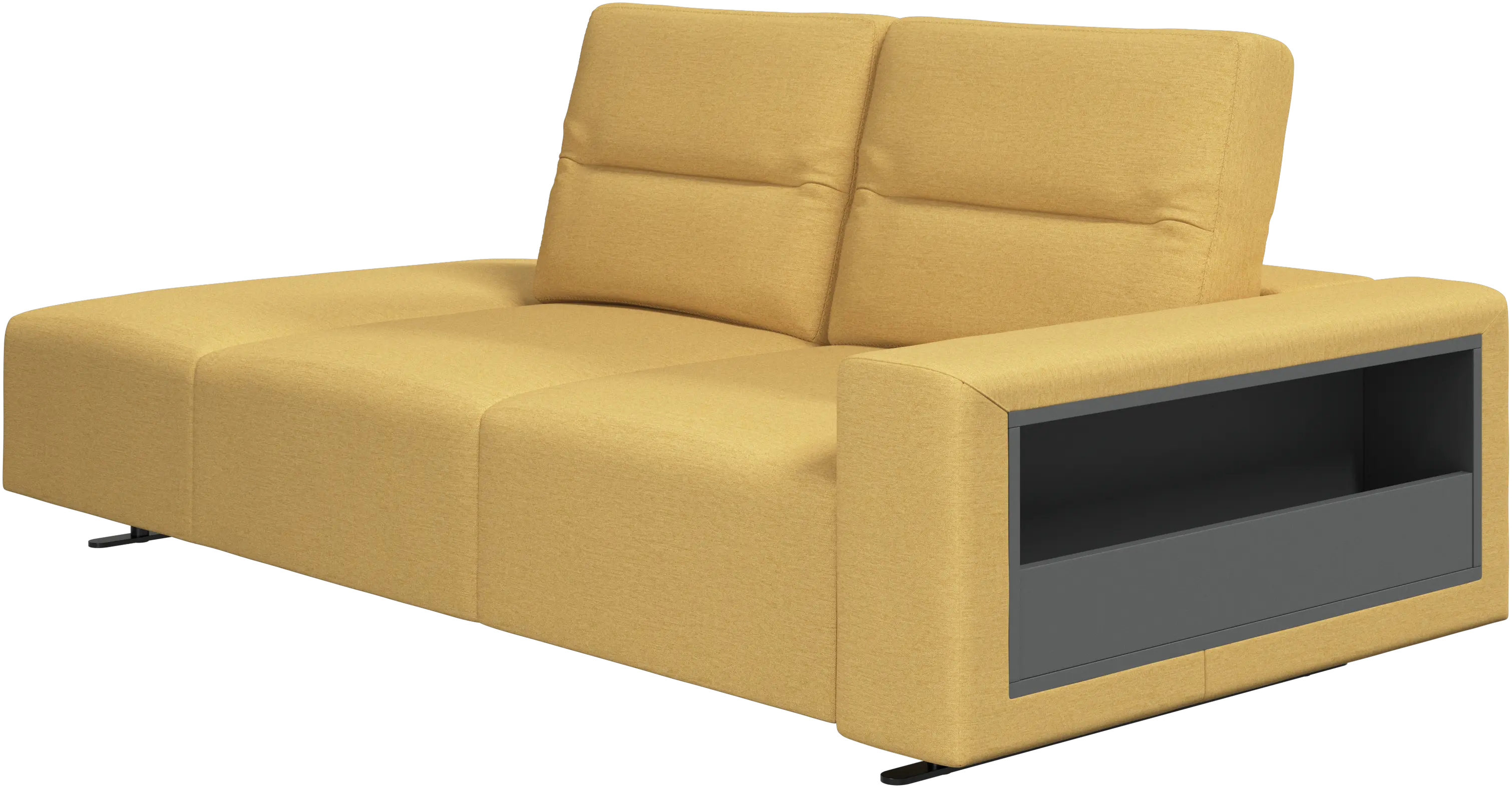 We know. It’s beautiful. But the modern Hampton sofa is much more than just good looks. A low base, a stunning loft look, adjustable backrests for comfort and visual impact – the Hampton sofa is the perfect personal retreat. The open end will create a dynamic, welcoming atmosphere - a true blessing for the integrated areas of open-plan living. And with clever built-in storage in the armrest, you will always have your living room essentials at hand.