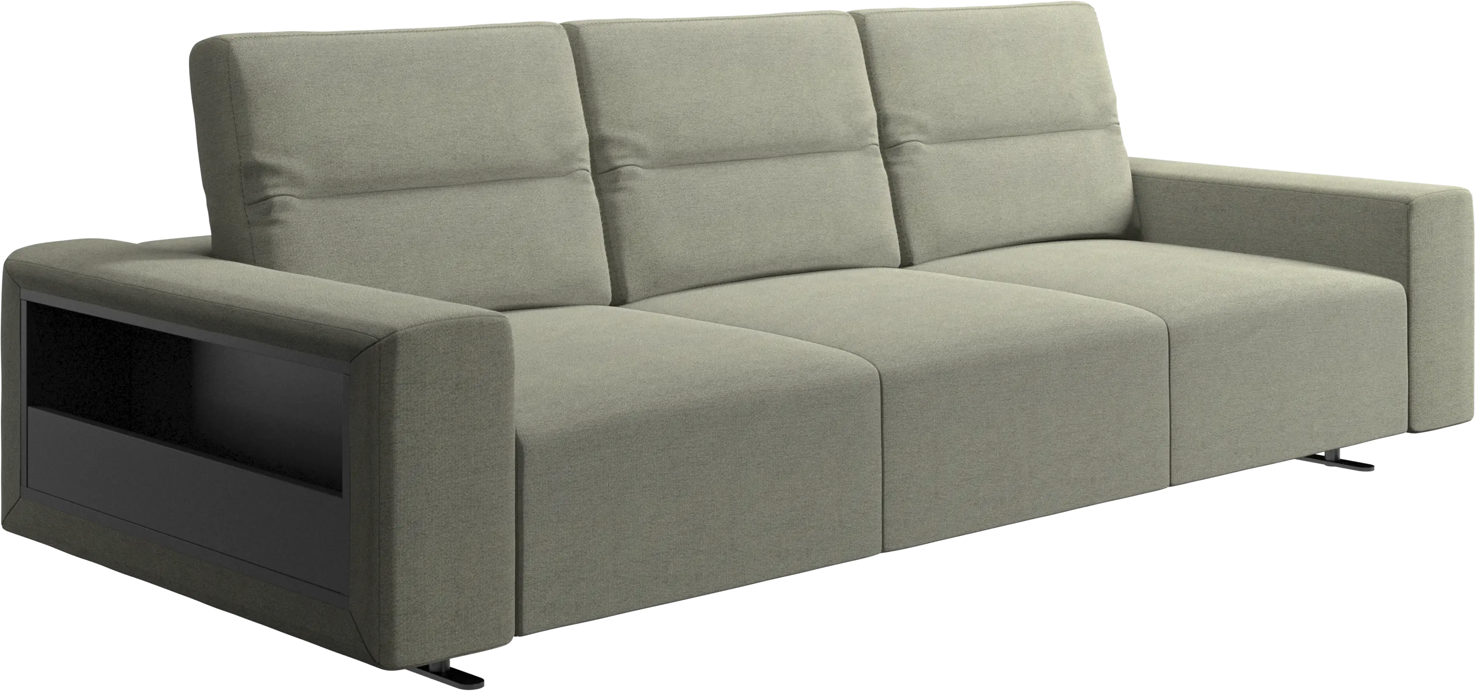 We know. It’s beautiful. But the modern Hampton sofa is much more than just good looks. A low base, a stunning loft look, adjustable backrests for comfort and visual impact – the Hampton sofa is the perfect personal retreat. Put your feet up, stretch out or use it as an extra seat – you won’t be sorry for choosing this comfortable chaise longue sofa. And with clever built-in storage in the armrest, you will always have your living room essentials at hand.