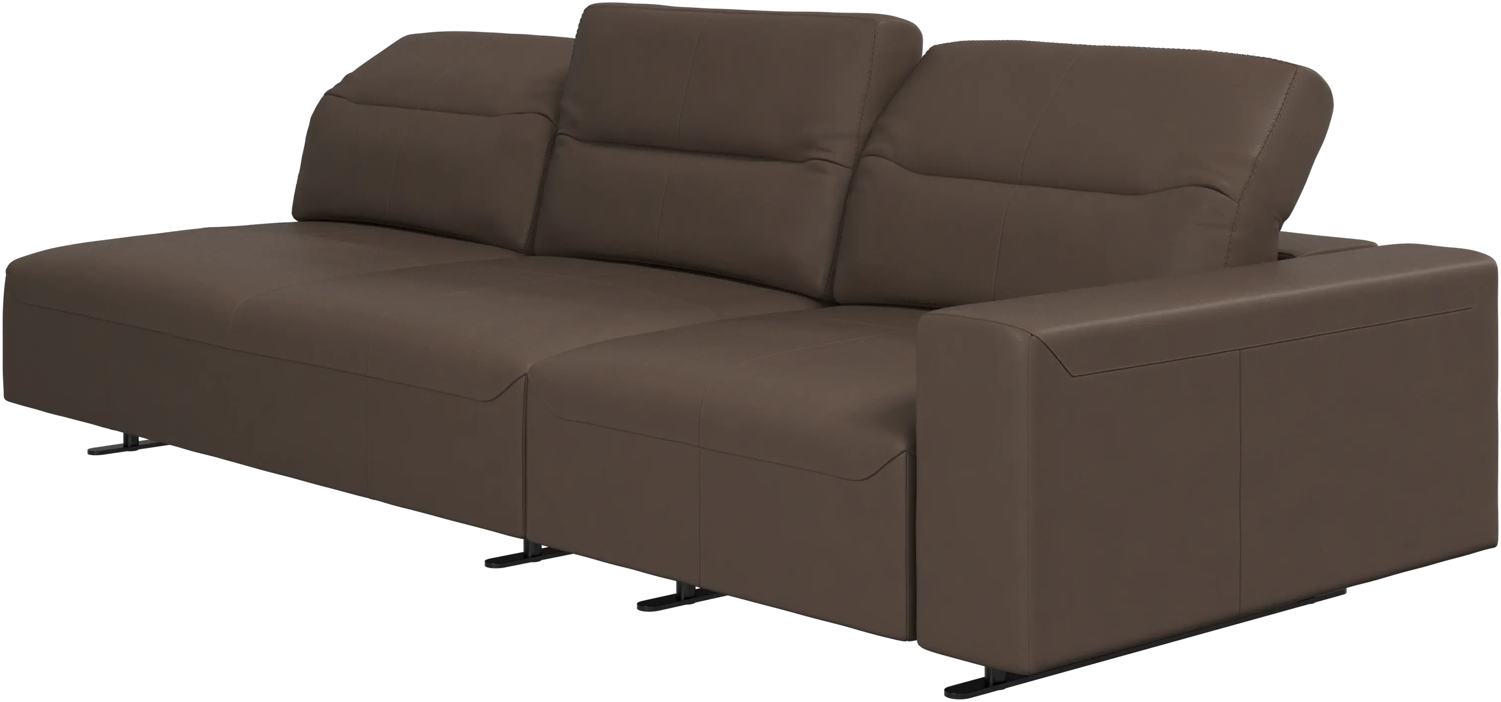 The total depth of the seat is 107 cm meaning wide enough to sleep on. To ensure optimal support despite this deep seating area, a lumbar cushion and a scatter cushion are available in coordinated fabrics and leathers.
