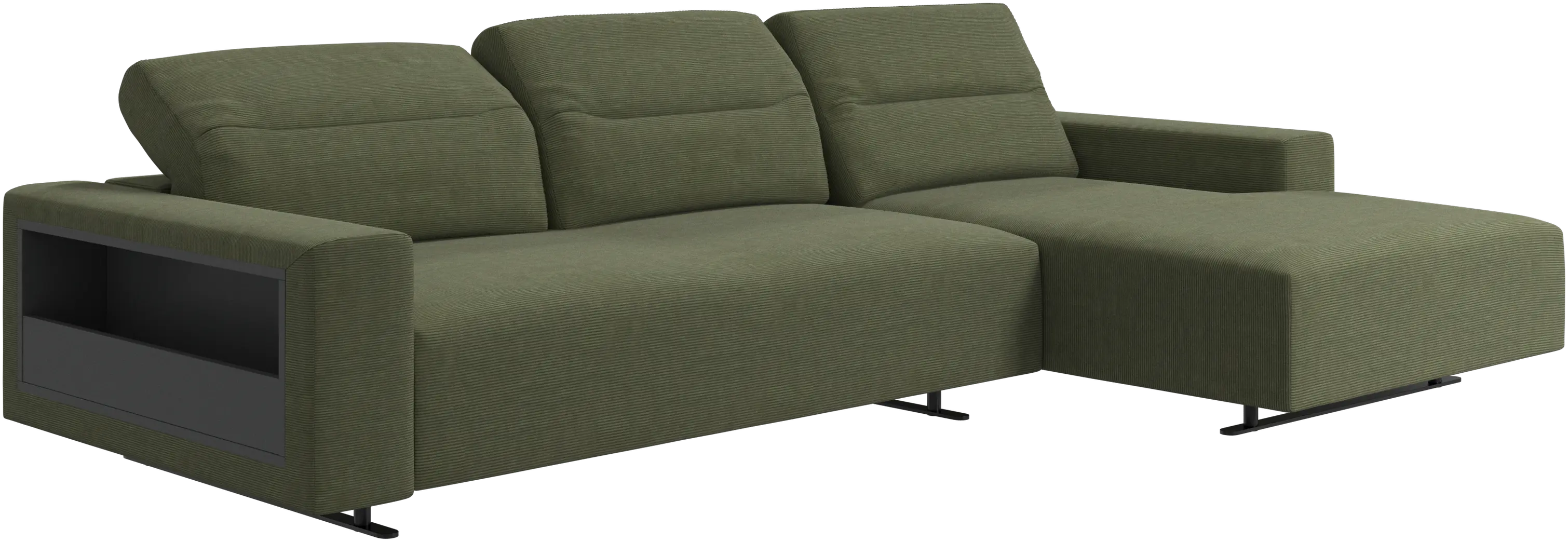 We know. It’s beautiful. But the modern Hampton sofa is much more than just good looks. A low base, a stunning loft look, adjustable backrests for comfort and visual impact – the Hampton sofa is the perfect personal retreat. Put your feet up, stretch out or use it as an extra seat – you won’t be sorry for choosing this comfortable chaise longue sofa. And with clever built-in storage in the armrest, you will always have your living room essentials at hand.