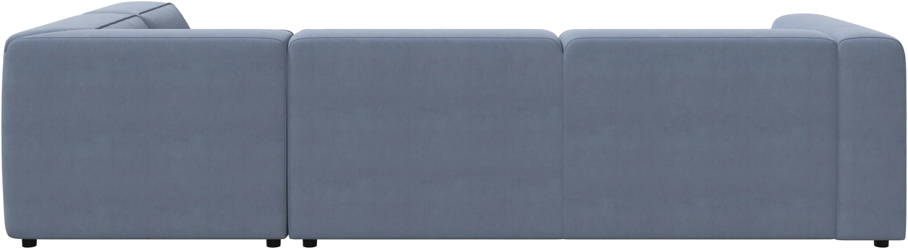 The low comfortable back has the same height as the armrest giving a fantastic seating comfort, especially in the corner.