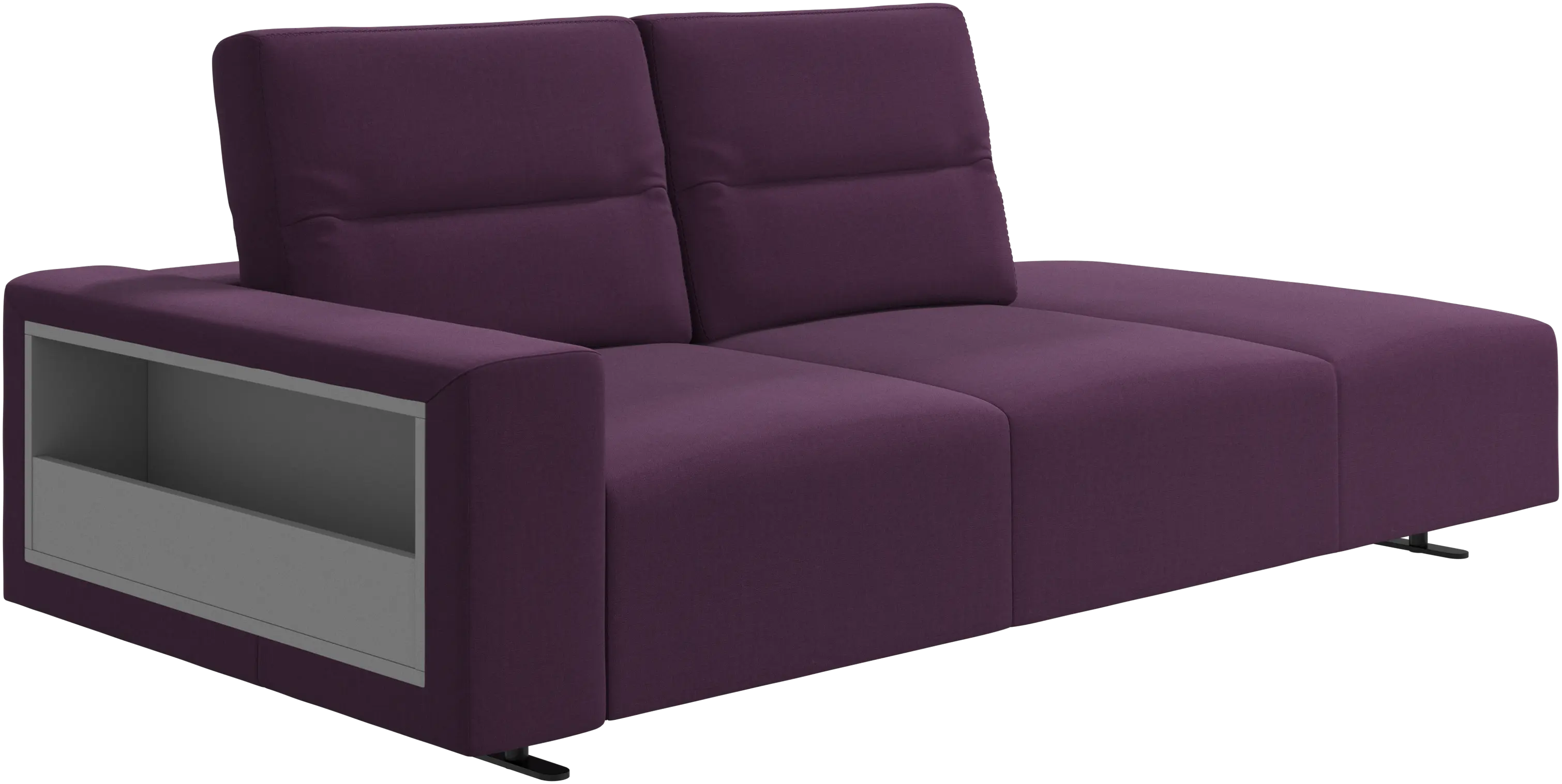 Hampton sofa with adjustable back and lounging unit right side, storage and armrest left side