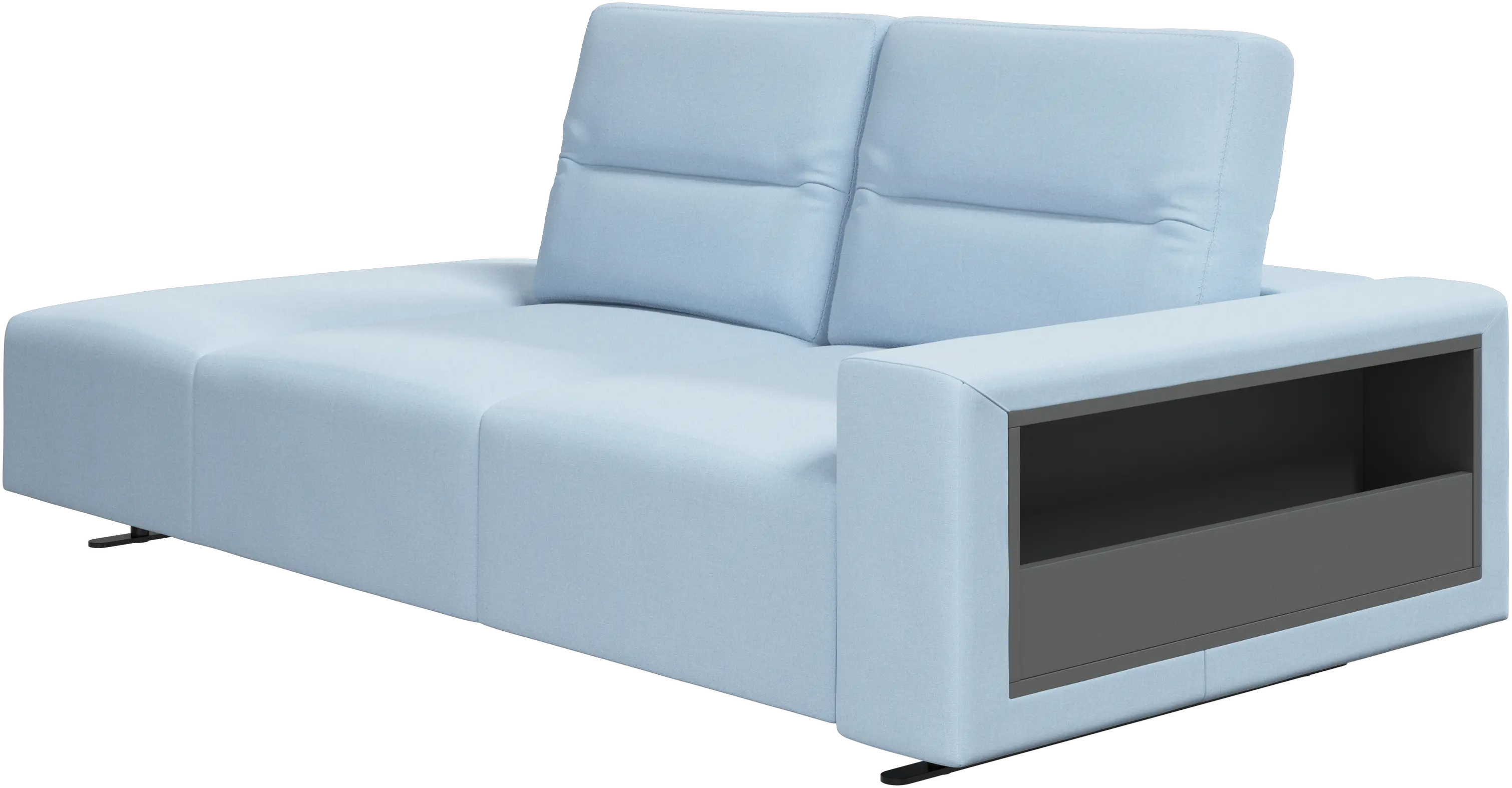 We know. It’s beautiful. But the modern Hampton sofa is much more than just good looks. A low base, a stunning loft look, adjustable backrests for comfort and visual impact – the Hampton sofa is the perfect personal retreat. The open end will create a dynamic, welcoming atmosphere - a true blessing for the integrated areas of open-plan living. And with clever built-in storage in the armrest, you will always have your living room essentials at hand.