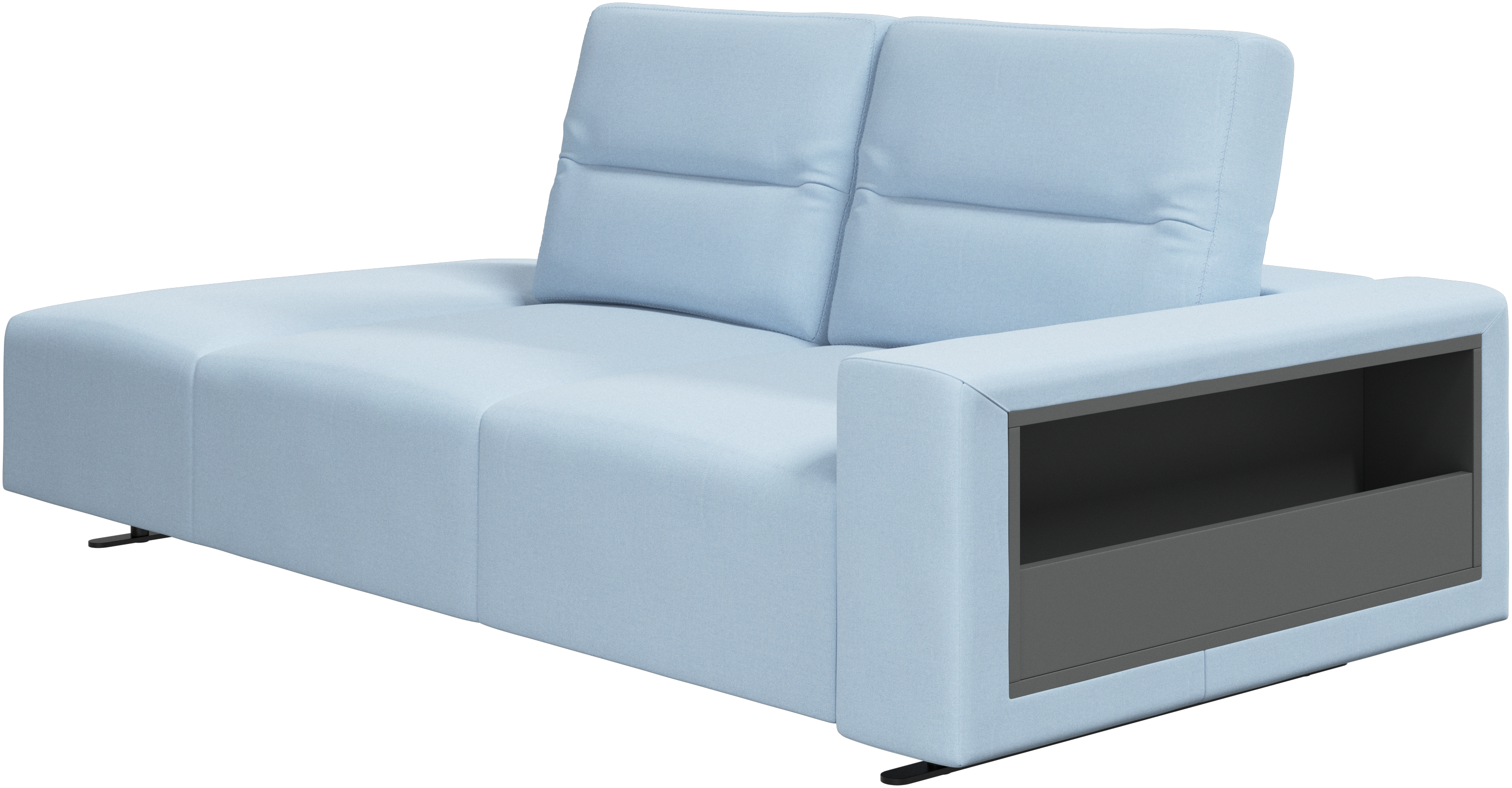 We know. It’s beautiful. But the modern Hampton sofa is much more than just good looks. A low base, a stunning loft look, adjustable backrests for comfort and visual impact – the Hampton sofa is the perfect personal retreat. The open end will create a dynamic, welcoming atmosphere - a true blessing for the integrated areas of open-plan living. And with clever built-in storage in the armrest, you will always have your living room essentials at hand.