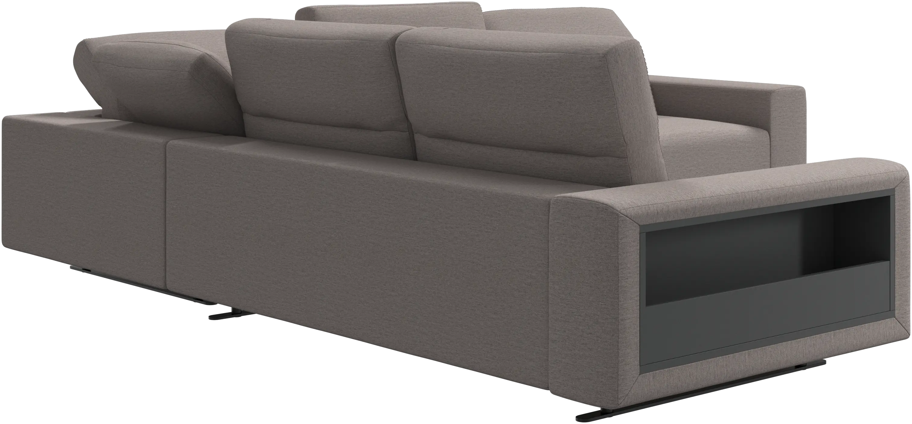Store books, magazines and the likes in the integrated storage solutions available in arm rests and the footstool.