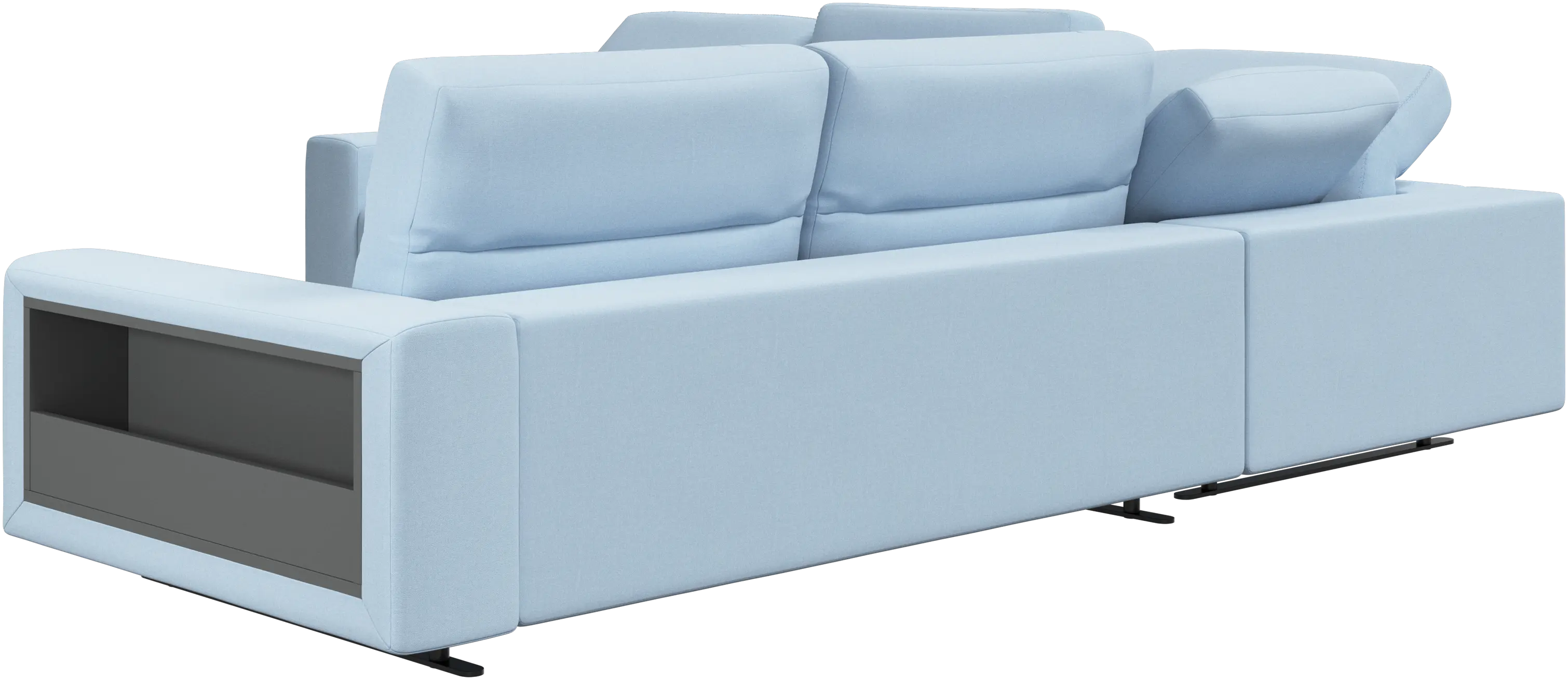 We know. It’s beautiful. But the modern Hampton sofa is much more than just good looks. A low base, a stunning loft look, adjustable backrests for comfort and visual impact – the Hampton sofa is the perfect personal retreat. Put your feet up, stretch out or use it as an extra seat – you won’t be sorry for choosing this comfortable chaise longue sofa. And with clever built-in storage in the armrest, you will always have your living room essentials at hand.
