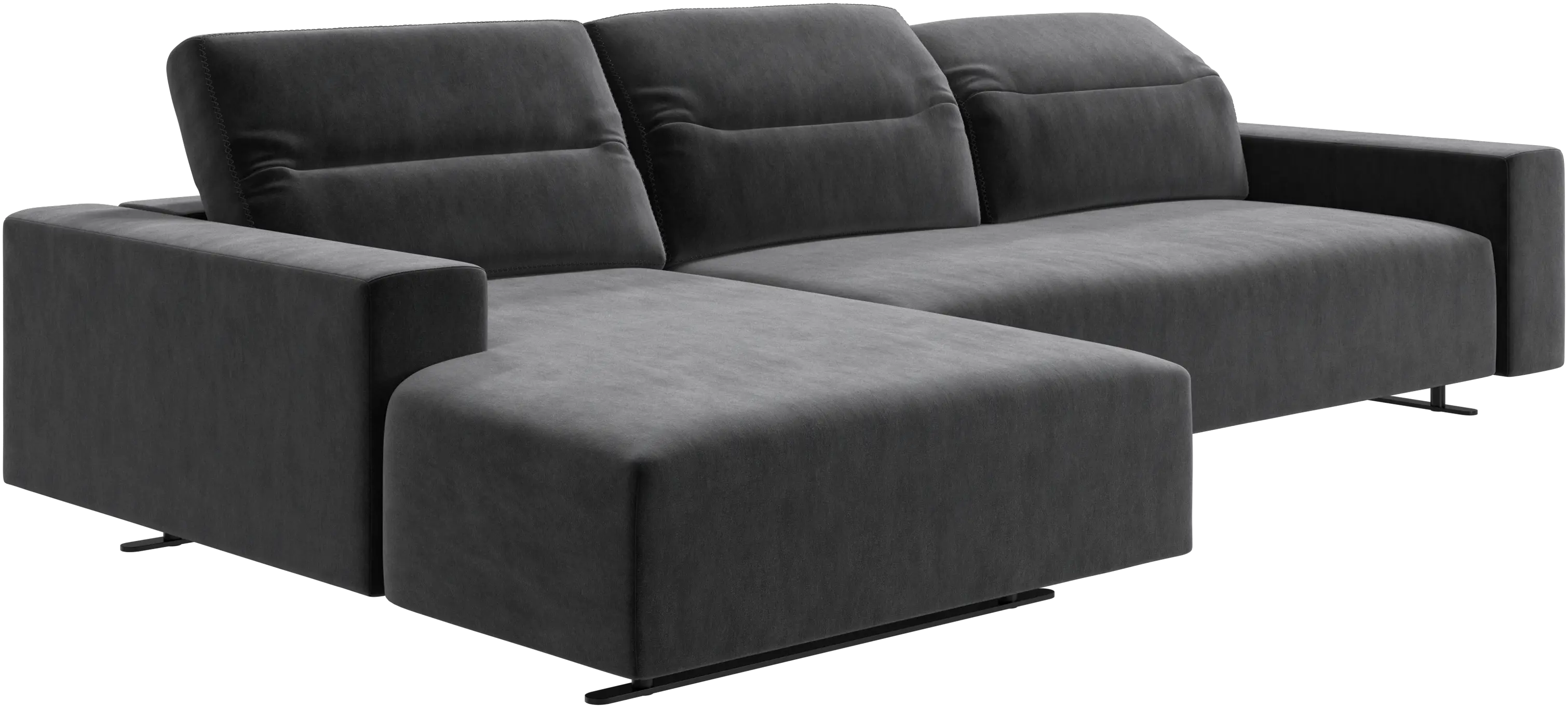 We know. It’s beautiful. But the modern Hampton sofa is much more than just good looks. A low base, a stunning loft look, adjustable backrests for comfort and visual impact – the Hampton sofa is the perfect personal retreat. Put your feet up, stretch out or use it as an extra seat – you won’t be sorry for choosing this comfortable chaise longue sofa. And with clever built-in storage in the armrest, you will always have your living room essentials at hand.