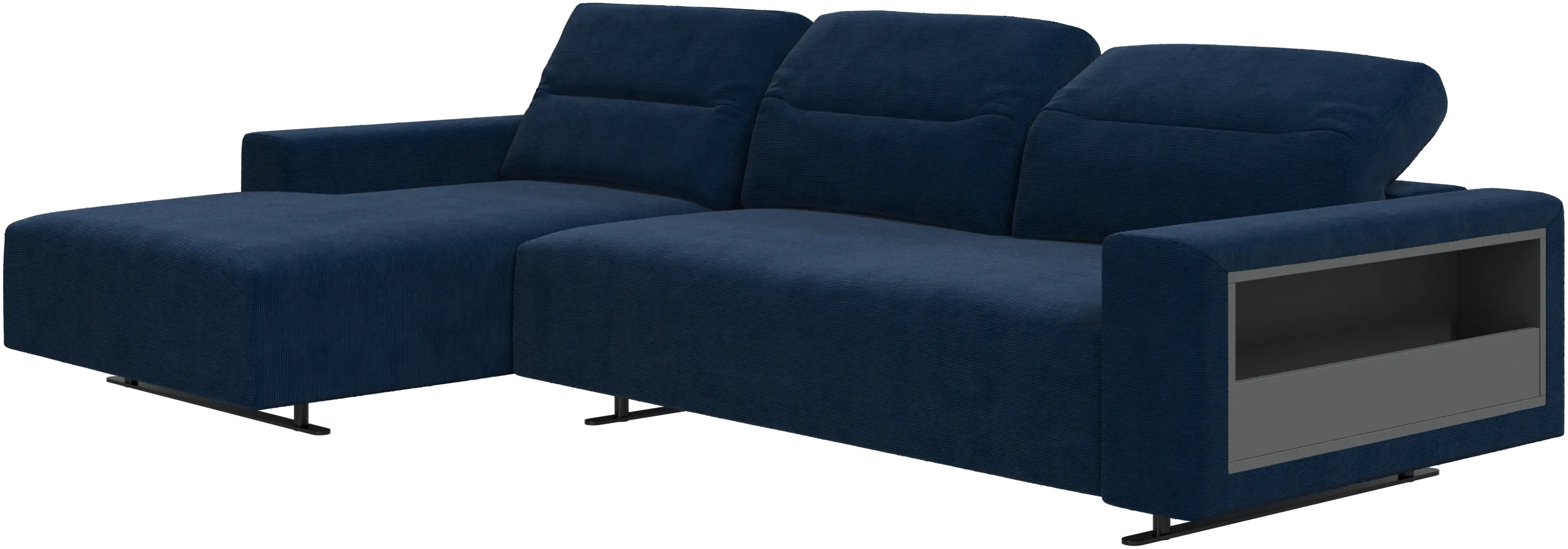 We know. It’s beautiful. But the modern Hampton sofa is much more than just good looks. A low base, a stunning loft look, adjustable backrests for comfort and visual impact – the Hampton sofa is the perfect personal retreat. Put your feet up, stretch out or use it as an extra seat – you won’t be sorry for choosing this comfortable chaise longue sofa. And with clever built-in storage in the armrest, you will always have your living room essentials at hand.