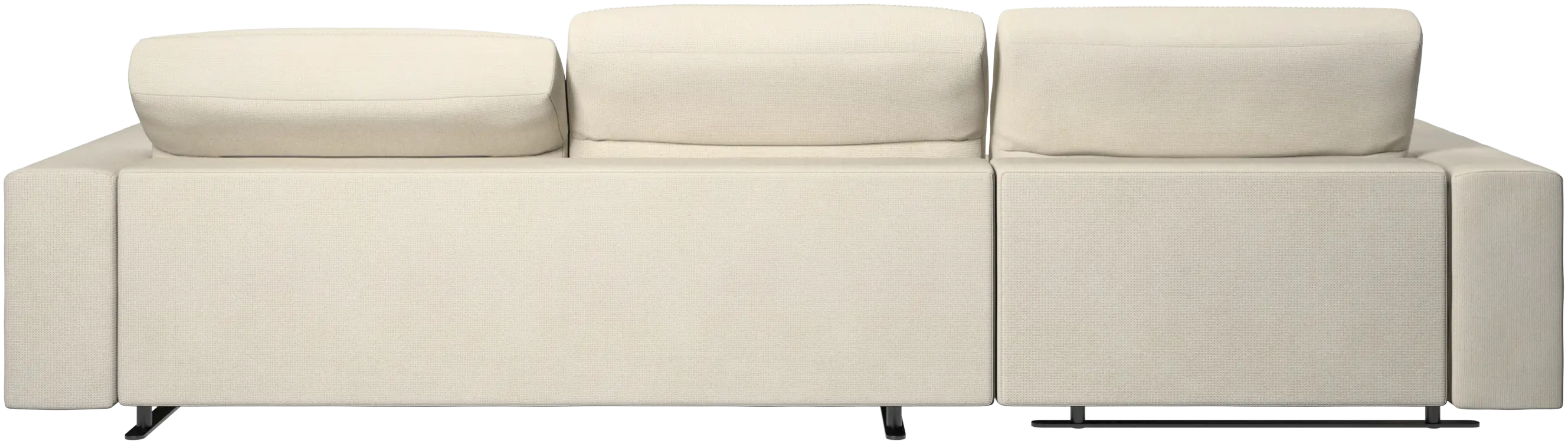 We know. It’s beautiful. But the modern Hampton sofa is much more than just good looks. A low base, a stunning loft look, adjustable backrests for comfort and visual impact – the Hampton sofa is the perfect personal retreat. Put your feet up, stretch out or use it as an extra seat – you won’t be sorry for choosing this comfortable chaise longue sofa. And with clever built-in storage in the armrest, you will always have your living room essentials at hand.