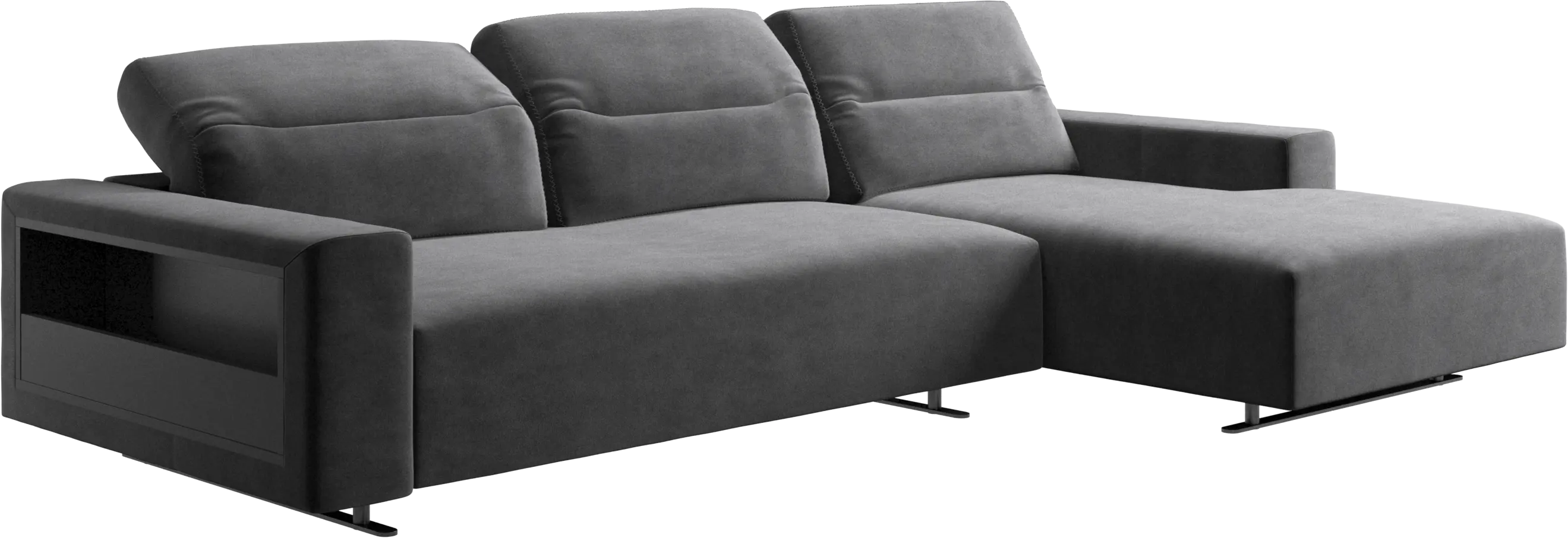 We know. It’s beautiful. But the modern Hampton sofa is much more than just good looks. A low base, a stunning loft look, adjustable backrests for comfort and visual impact – the Hampton sofa is the perfect personal retreat. Put your feet up, stretch out or use it as an extra seat – you won’t be sorry for choosing this comfortable chaise longue sofa. And with clever built-in storage in the armrest, you will always have your living room essentials at hand.