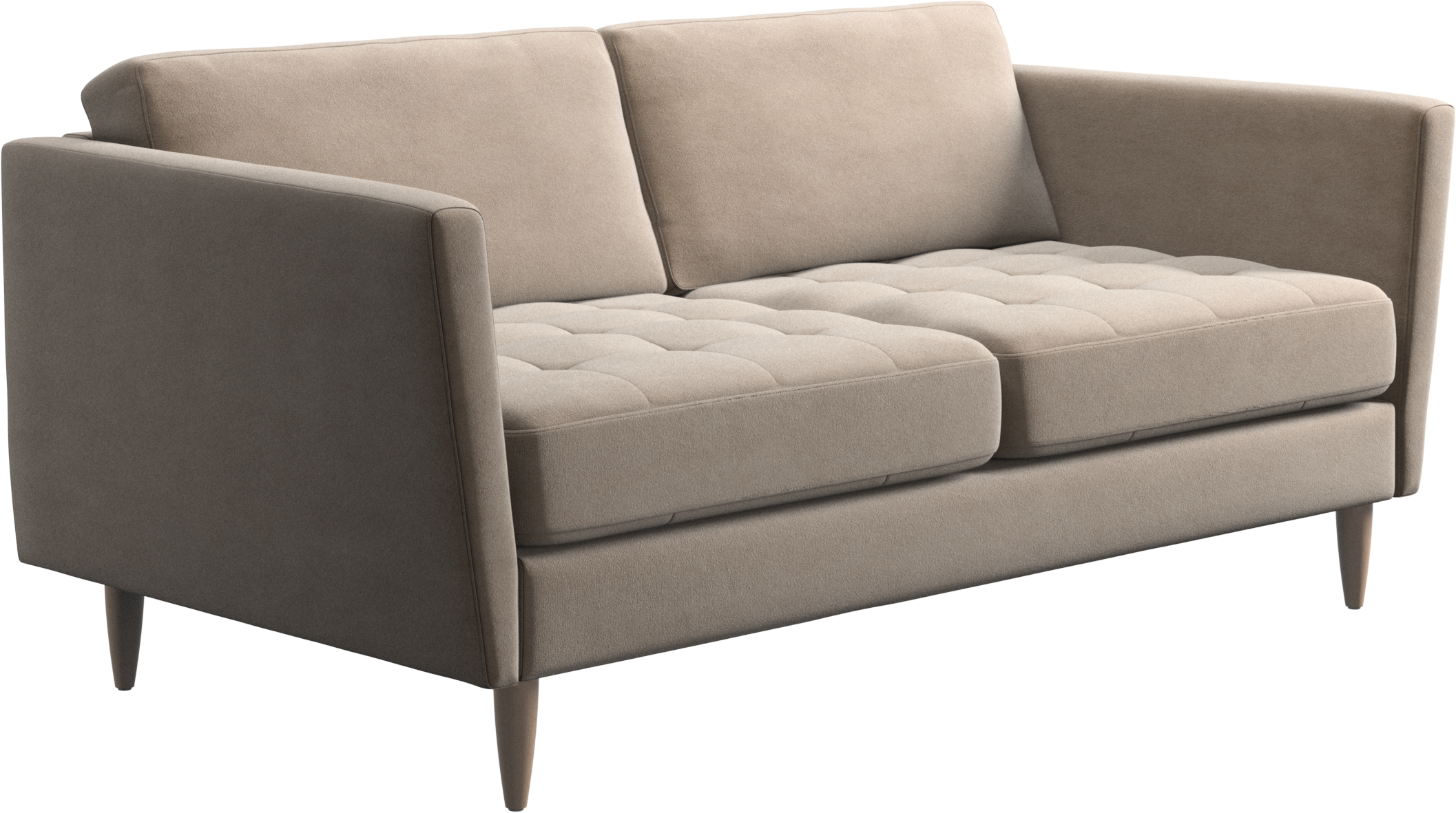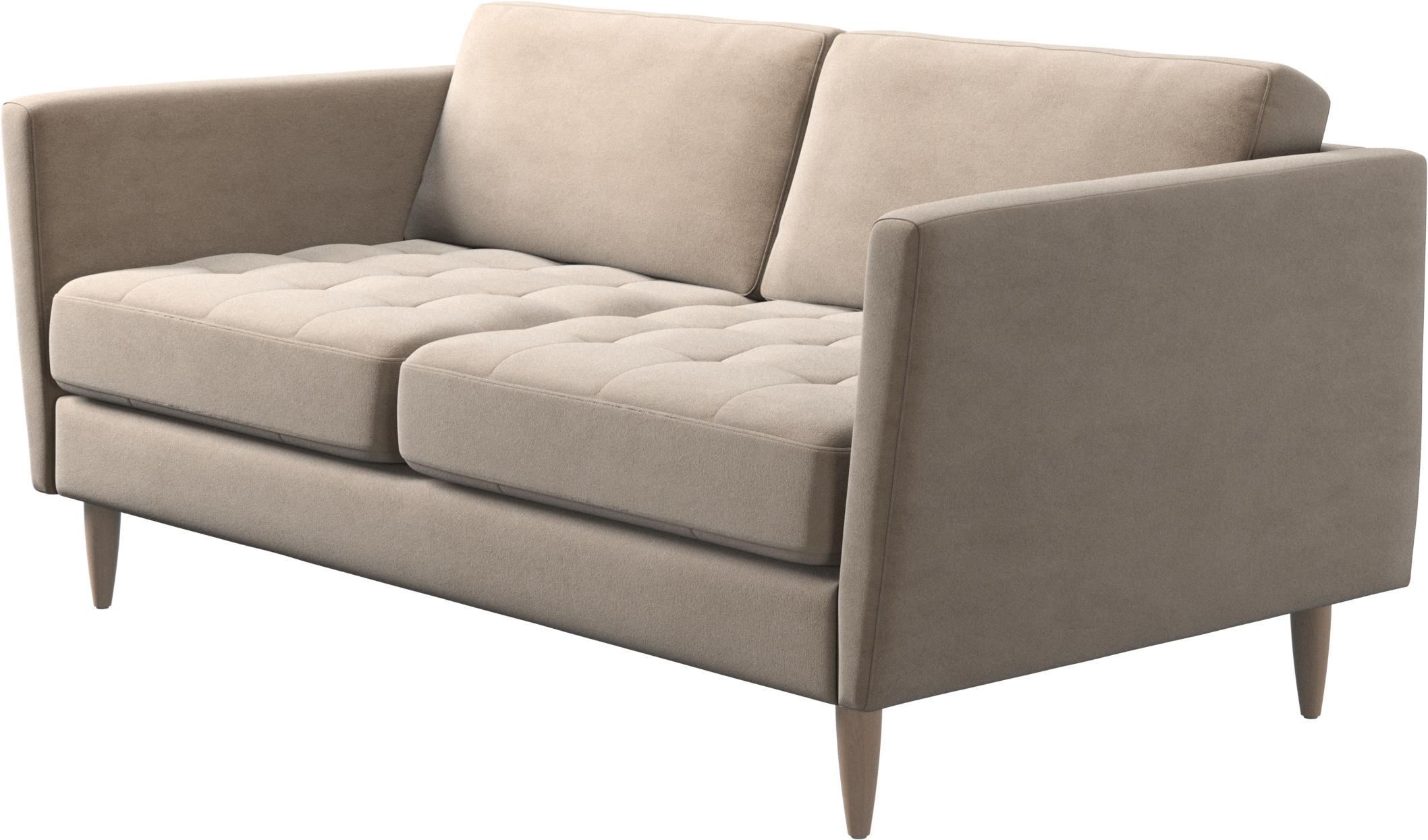 A light look and slim proportions make the Osaka sofa perfect for small homes, while a subtle feminine look and a touch of 60s design ensure that the Osaka sofa still packs a style punch. The beautiful tufted seats add visual softness and bring a classic look to your living room. Inclined armrests give the sofa a modern, unique look and open it up to the rest of the room. Though small in size, this 2 seater sofa is big on style and will perfectly fit a small living room.