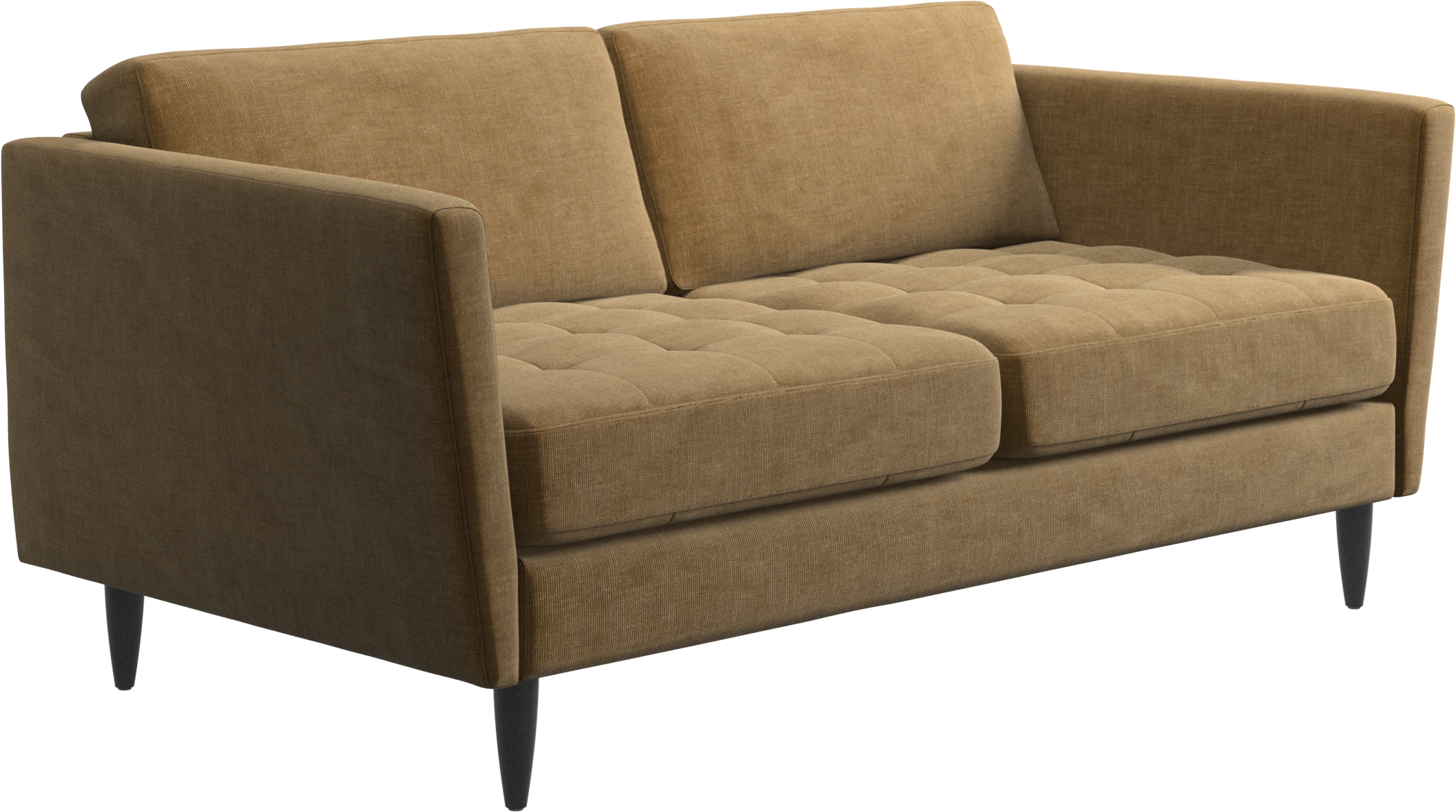 A light look and slim proportions make the Osaka sofa perfect for small homes, while a subtle feminine look and a touch of 60s design ensure that the Osaka sofa still packs a style punch. The beautiful tufted seats add visual softness and bring a classic look to your living room. Inclined armrests give the sofa a modern, unique look and open it up to the rest of the room. Though small in size, this 2 seater sofa is big on style and will perfectly fit a small living room.