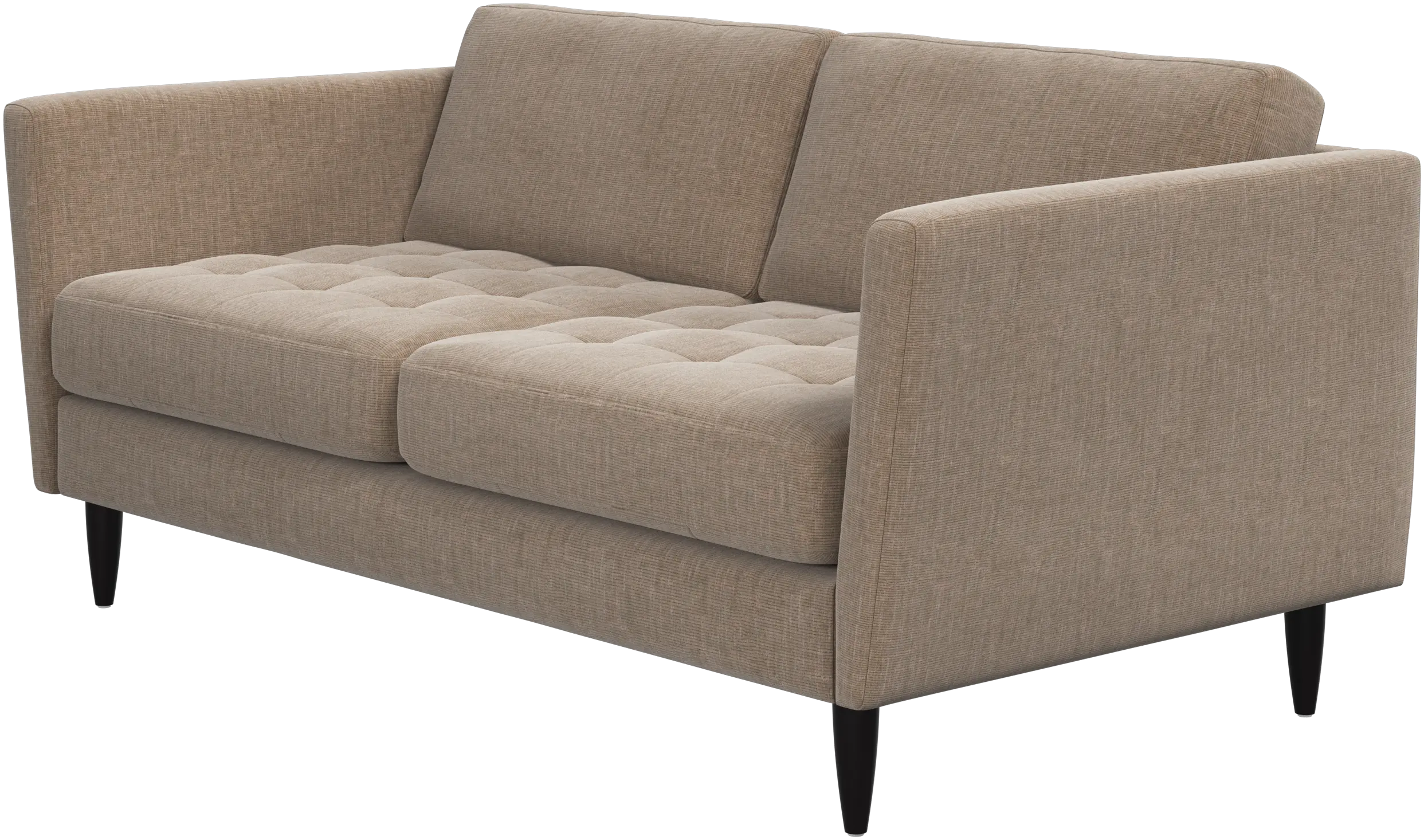 A light look and slim proportions make the Osaka sofa perfect for small homes, while a subtle feminine look and a touch of 60s design ensure that the Osaka sofa still packs a style punch. The beautiful tufted seats add visual softness and bring a classic look to your living room. Inclined armrests give the sofa a modern, unique look and open it up to the rest of the room. Though small in size, this 2 seater sofa is big on style and will perfectly fit a small living room.