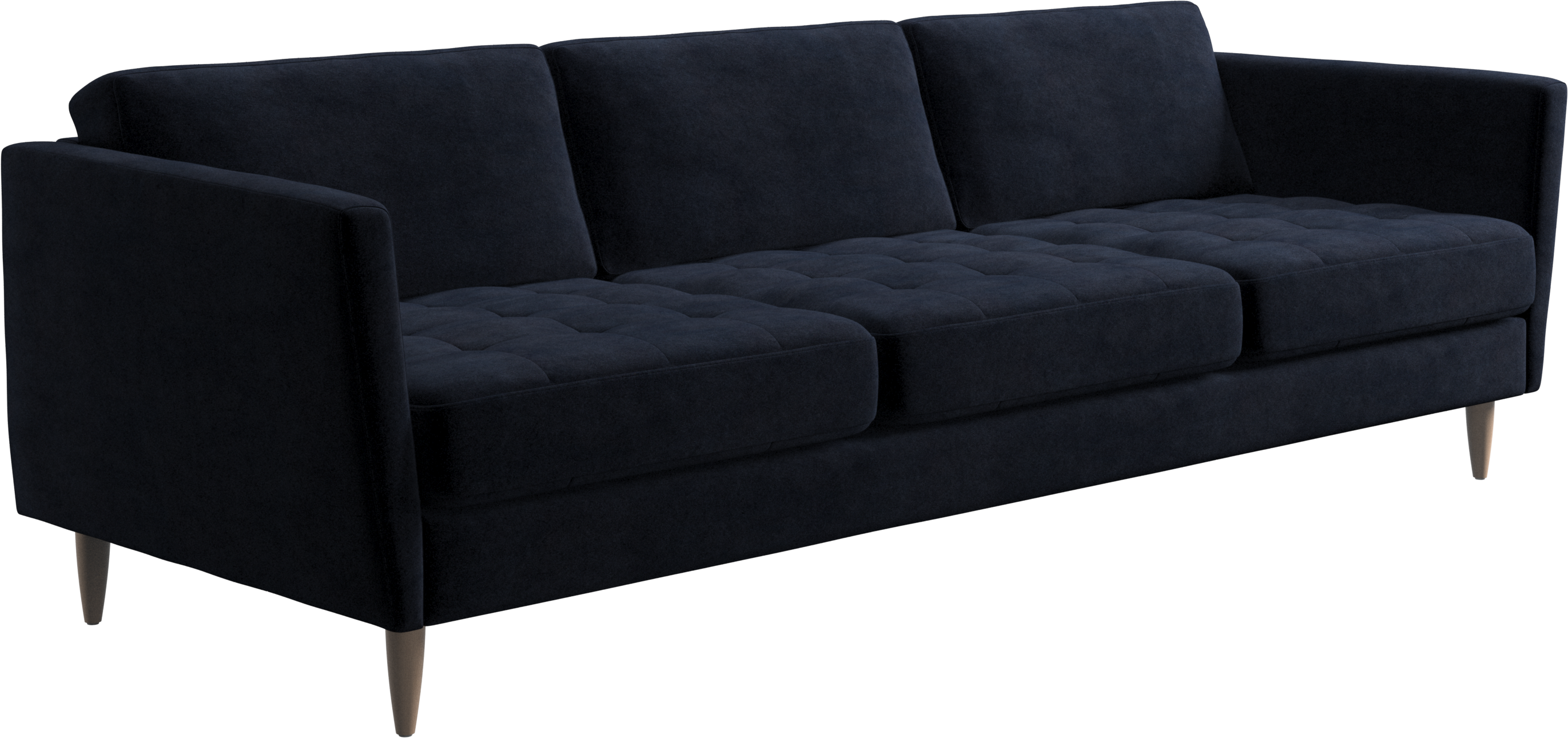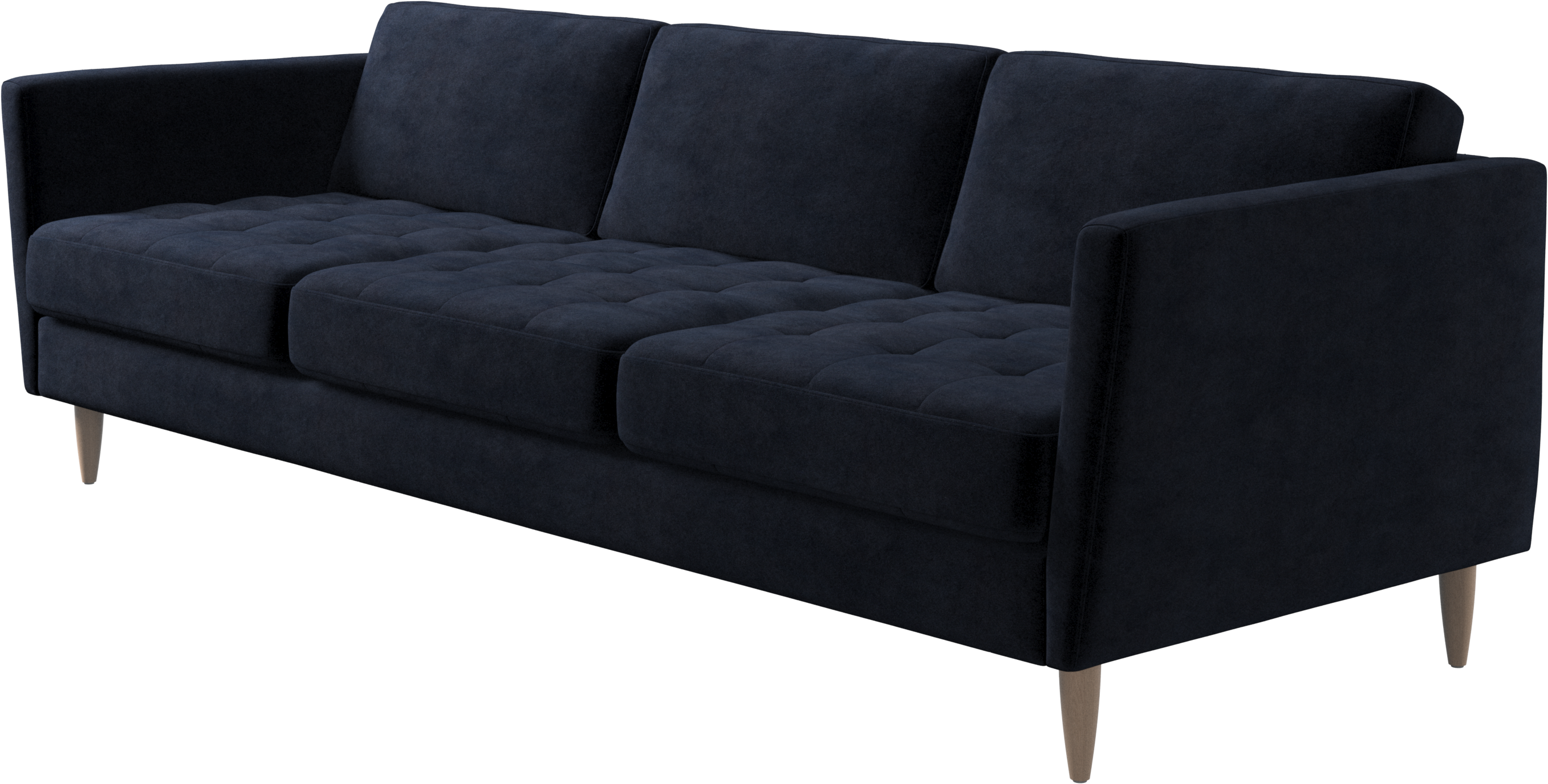 A light look and slim proportions make the Osaka sofa perfect for small homes, while a subtle feminine look and a touch of 60s design ensure that the Osaka sofa still packs a style punch. The beautiful tufted seats add visual softness and bring a classic look to your living room. Inclined armrests give the sofa a modern, unique look and open it up to the rest of the room. Cosy up with your family or claim the sofa all to yourself with this roomy 3 seater sofa.