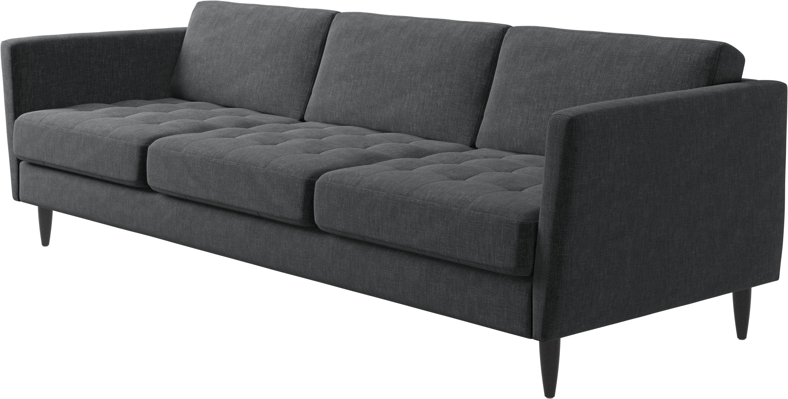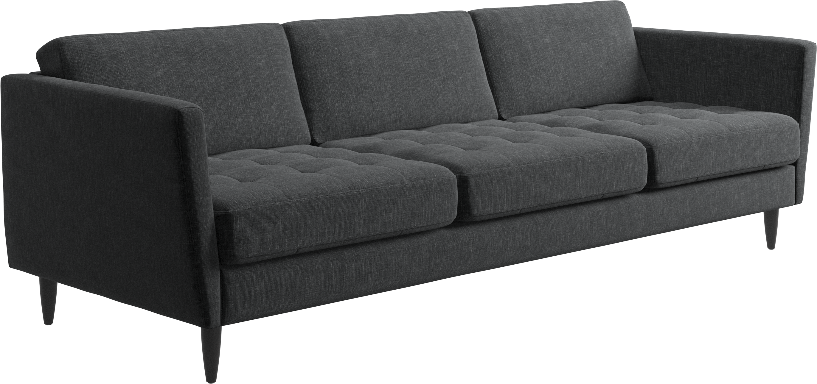 A light look and slim proportions make the Osaka sofa perfect for small homes, while a subtle feminine look and a touch of 60s design ensure that the Osaka sofa still packs a style punch. The beautiful tufted seats add visual softness and bring a classic look to your living room. Inclined armrests give the sofa a modern, unique look and open it up to the rest of the room. Cosy up with your family or claim the sofa all to yourself with this roomy 3 seater sofa.