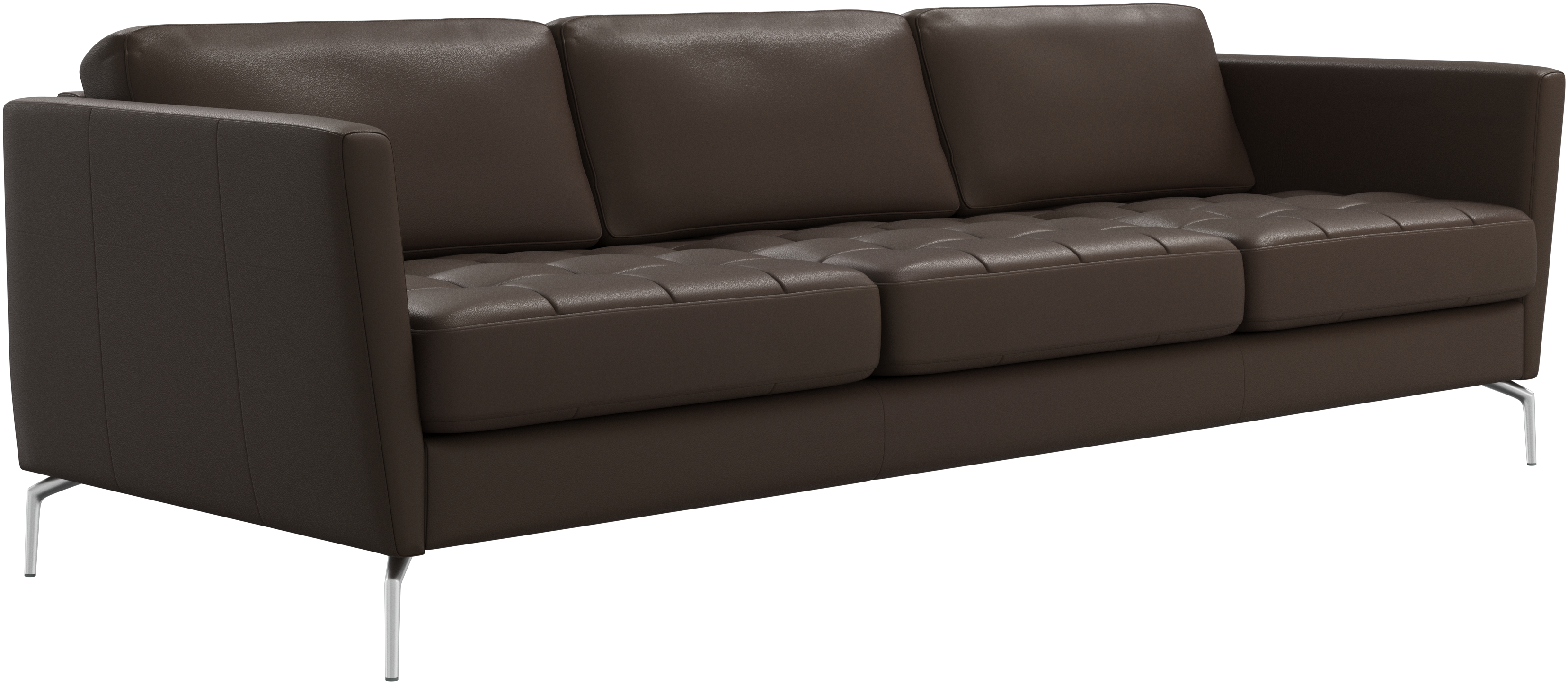 A light look and slim proportions make the Osaka sofa perfect for small homes, while a subtle feminine look and a touch of 60s design ensure that the Osaka sofa still packs a style punch. The beautiful tufted seats add visual softness and bring a classic look to your living room. Inclined armrests give the sofa a modern, unique look and open it up to the rest of the room. Cosy up with your family or claim the sofa all to yourself with this roomy 3 seater sofa.