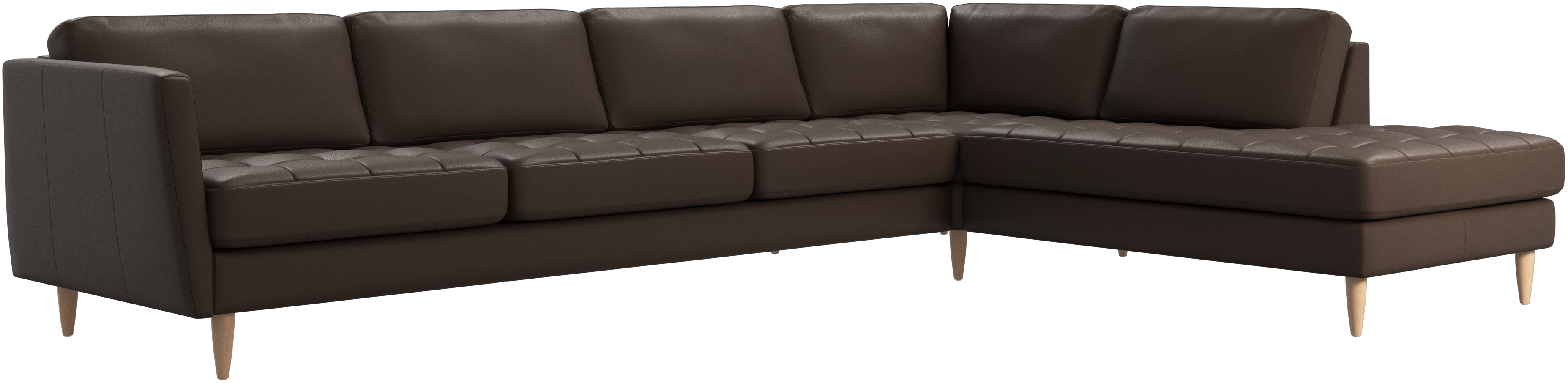 A light look and slim proportions make the Osaka sofa perfect for small homes, while a subtle feminine look and a touch of 60s design ensure that the Osaka sofa still packs a style punch. The beautiful tufted seats add visual softness and bring a classic look to your living room. Inclined armrests give the sofa a modern, unique look and open it up to the rest of the room. With plenty of room for the entire family this corner sofa will be the hero of your living room. The open end will create a dynamic, welcoming atmosphere - a true blessing for the integrated areas of open-plan living. Put your feet up, stretch out or use it as an extra seat – you won’t be sorry for choosing this comfortable chaise longue sofa.