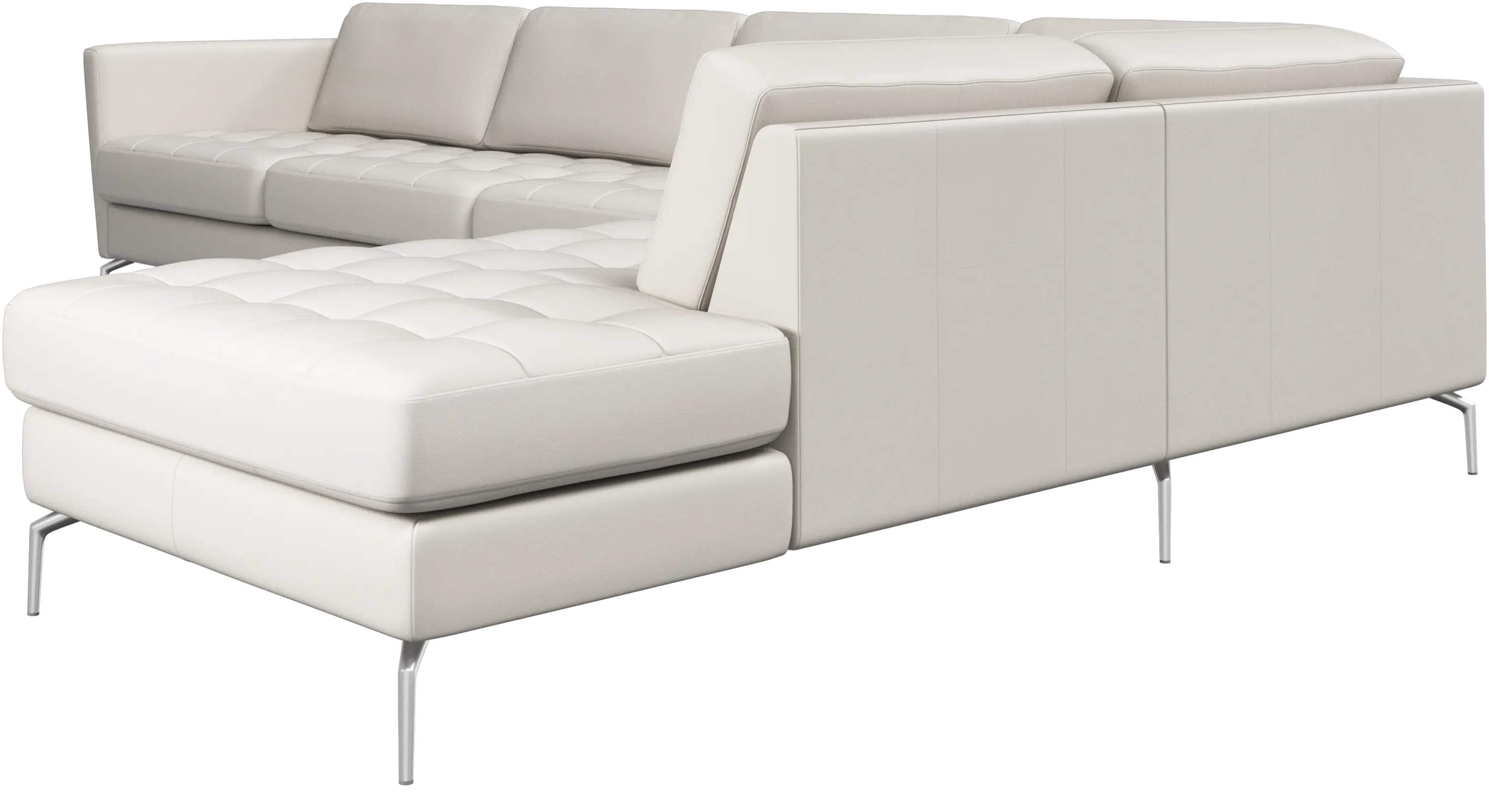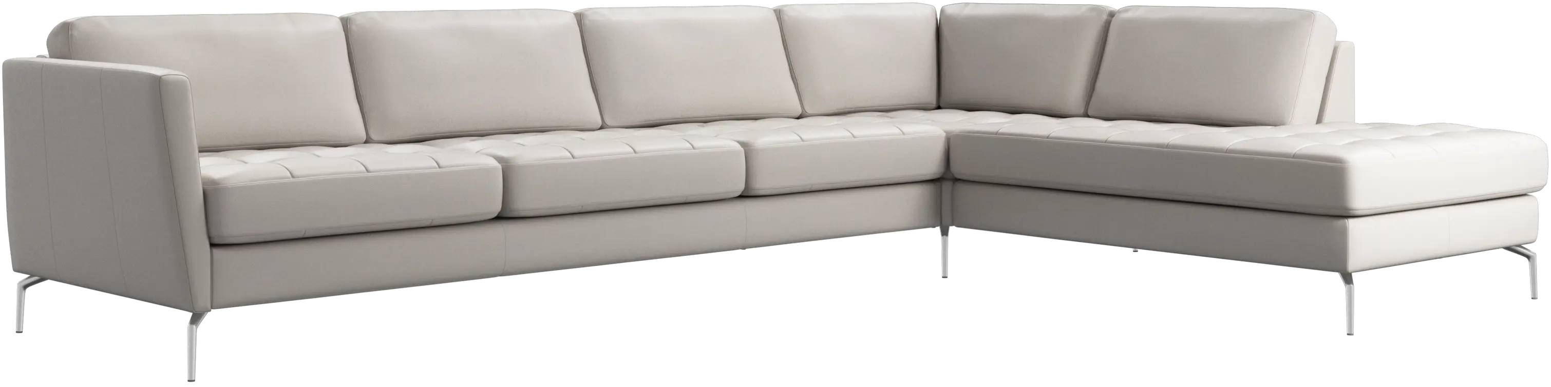 A light look and slim proportions make the Osaka sofa perfect for small homes, while a subtle feminine look and a touch of 60s design ensure that the Osaka sofa still packs a style punch. The beautiful tufted seats add visual softness and bring a classic look to your living room. Inclined armrests give the sofa a modern, unique look and open it up to the rest of the room. With plenty of room for the entire family this corner sofa will be the hero of your living room. The open end will create a dynamic, welcoming atmosphere - a true blessing for the integrated areas of open-plan living. Put your feet up, stretch out or use it as an extra seat – you won’t be sorry for choosing this comfortable chaise longue sofa.
