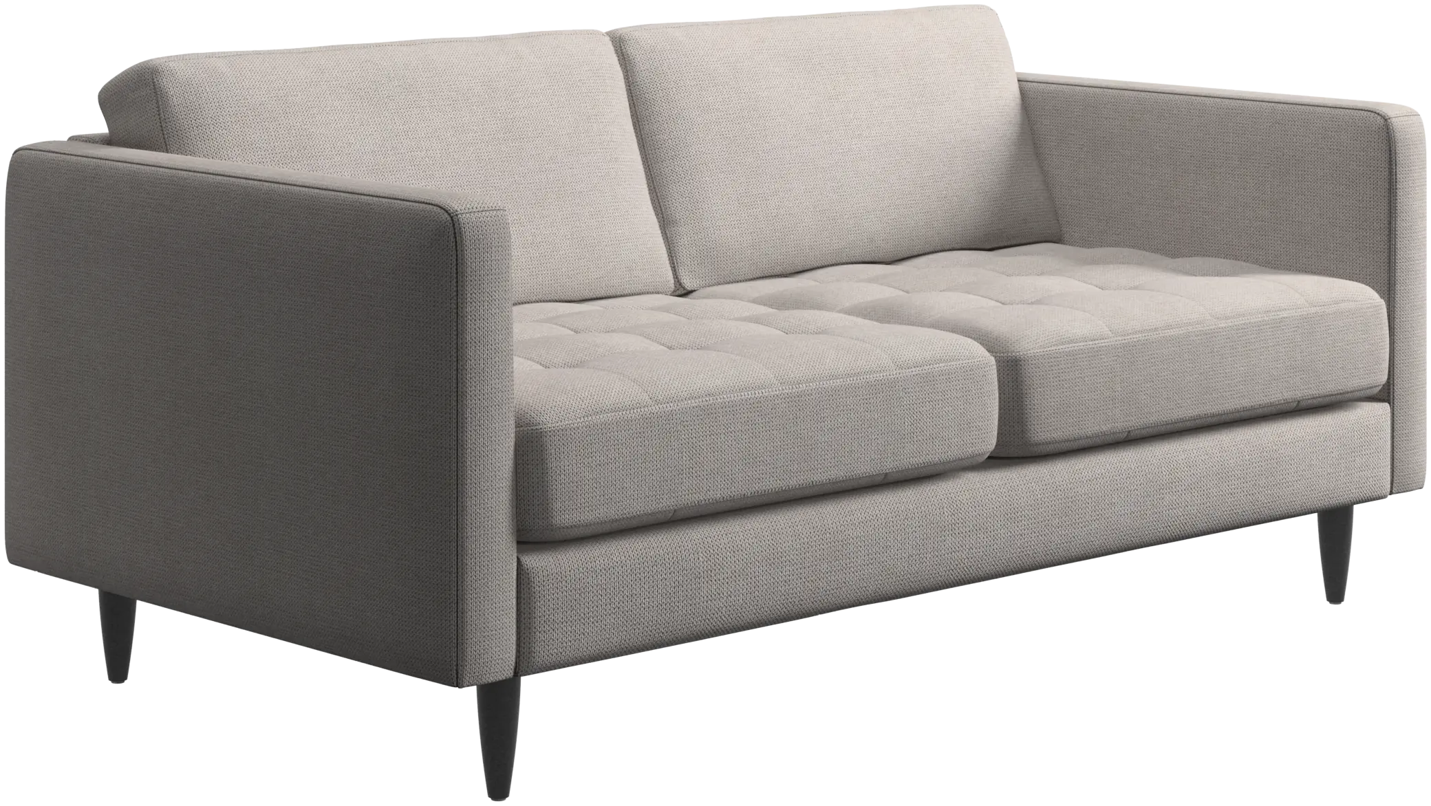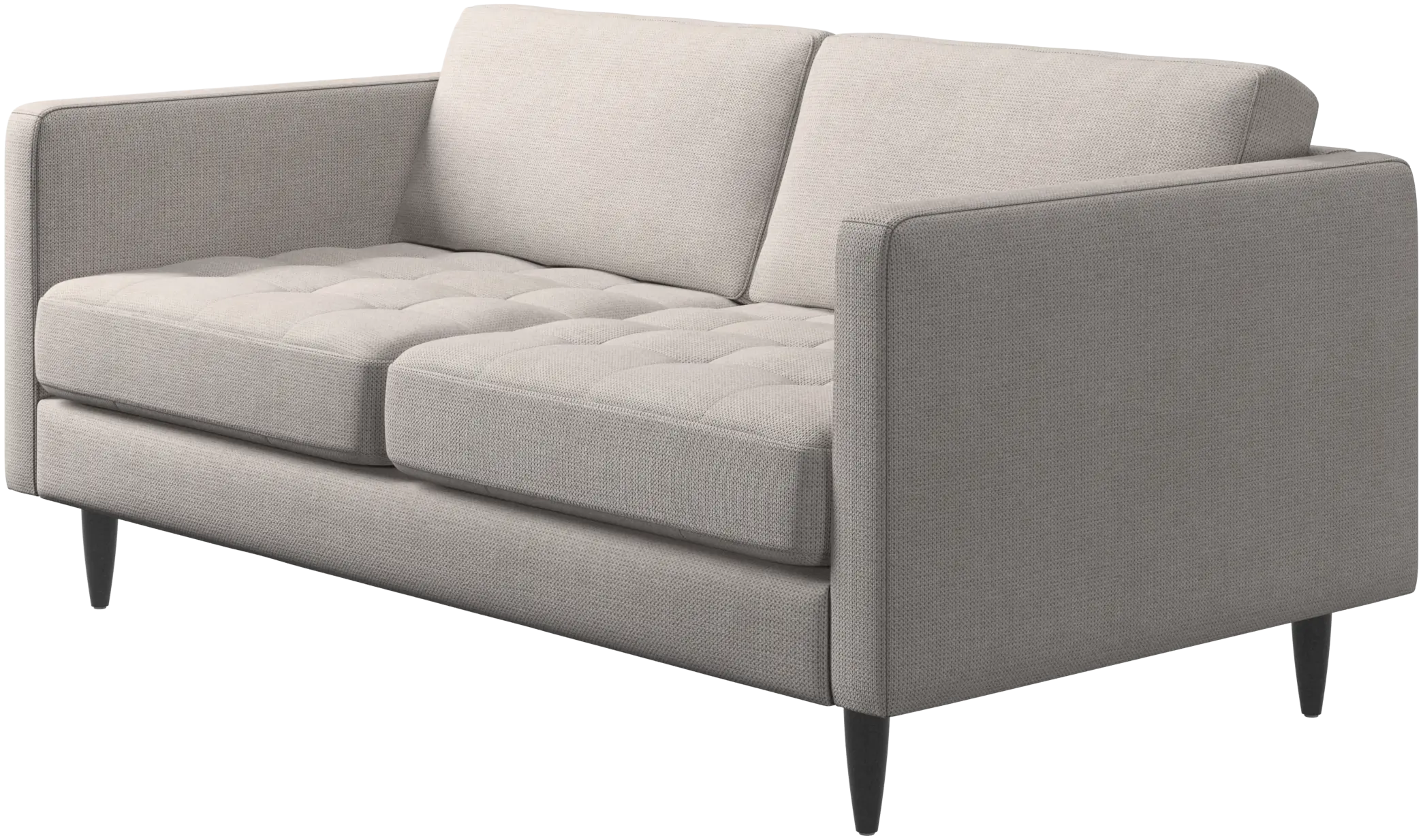 A light look and slim proportions make the Osaka sofa perfect for small homes, while a subtle feminine look and a touch of 60s design ensure that the Osaka sofa still packs a style punch. The beautiful tufted seats add visual softness and bring a classic look to your living room. The classic, straight armrests emphasise the clean lines and Scandinavian look. Though small in size, this 2 seater sofa is big on style and will perfectly fit a small living room.