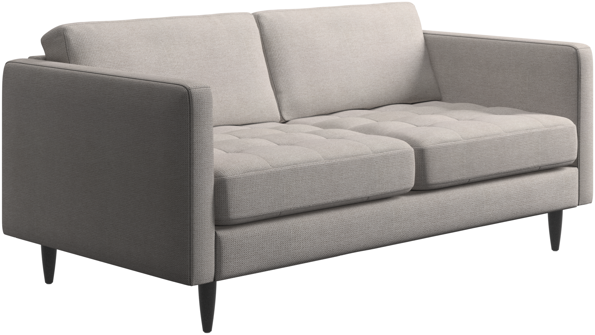 A light look and slim proportions make the Osaka sofa perfect for small homes, while a subtle feminine look and a touch of 60s design ensure that the Osaka sofa still packs a style punch. The beautiful tufted seats add visual softness and bring a classic look to your living room. The classic, straight armrests emphasise the clean lines and Scandinavian look. Though small in size, this 2 seater sofa is big on style and will perfectly fit a small living room.