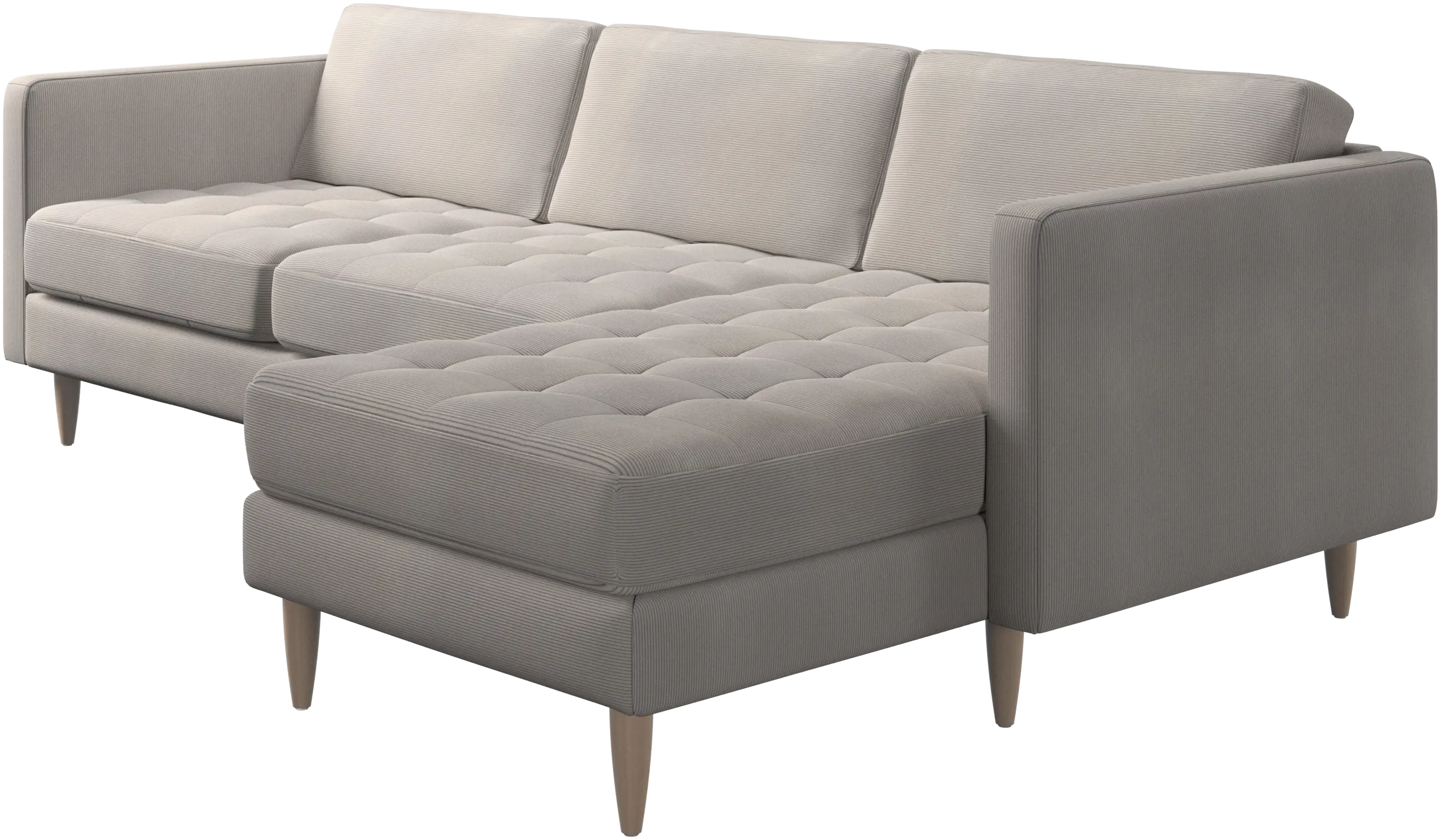 A light look and slim proportions make the Osaka sofa perfect for small homes, while a subtle feminine look and a touch of 60s design ensure that the Osaka sofa still packs a style punch. The beautiful tufted seats add visual softness and bring a classic look to your living room. The classic, straight armrests emphasise the clean lines and Scandinavian look. Put your feet up, stretch out or use it as an extra seat – you won’t be sorry for choosing this comfortable chaise longue sofa.