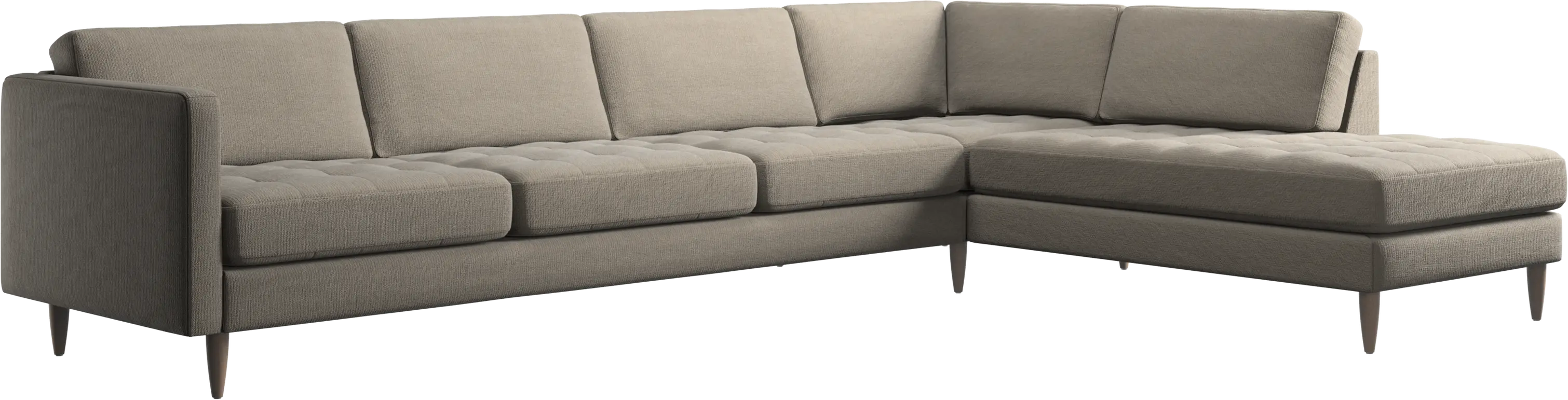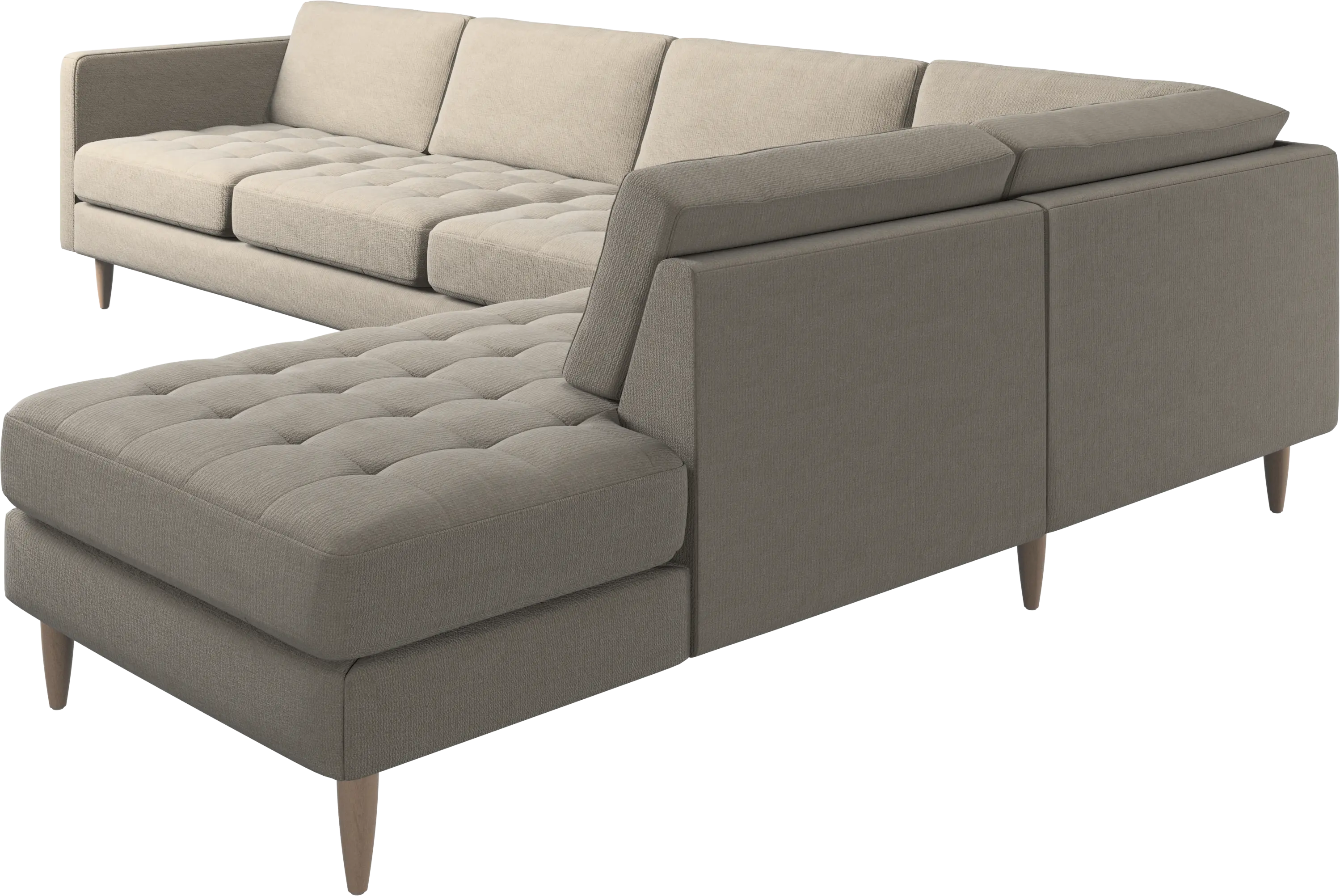 A light look and slim proportions make the Osaka sofa perfect for small homes, while a subtle feminine look and a touch of 60s design ensure that the Osaka sofa still packs a style punch. The beautiful tufted seats add visual softness and bring a classic look to your living room. The classic, straight armrests emphasise the clean lines and Scandinavian look. With plenty of room for the entire family this corner sofa will be the hero of your living room. The open end will create a dynamic, welcoming atmosphere - a true blessing for the integrated areas of open-plan living. Put your feet up, stretch out or use it as an extra seat – you won’t be sorry for choosing this comfortable chaise longue sofa.