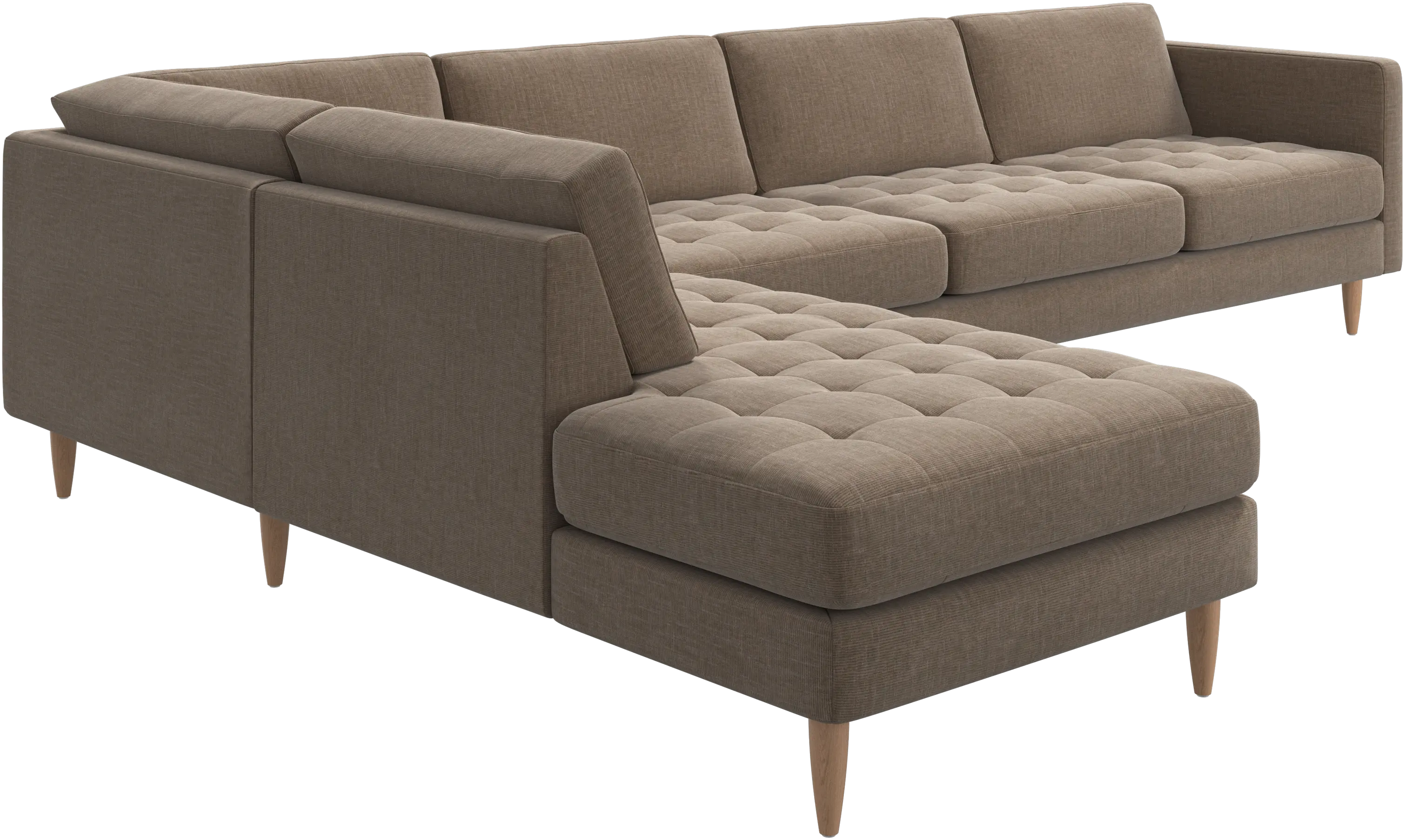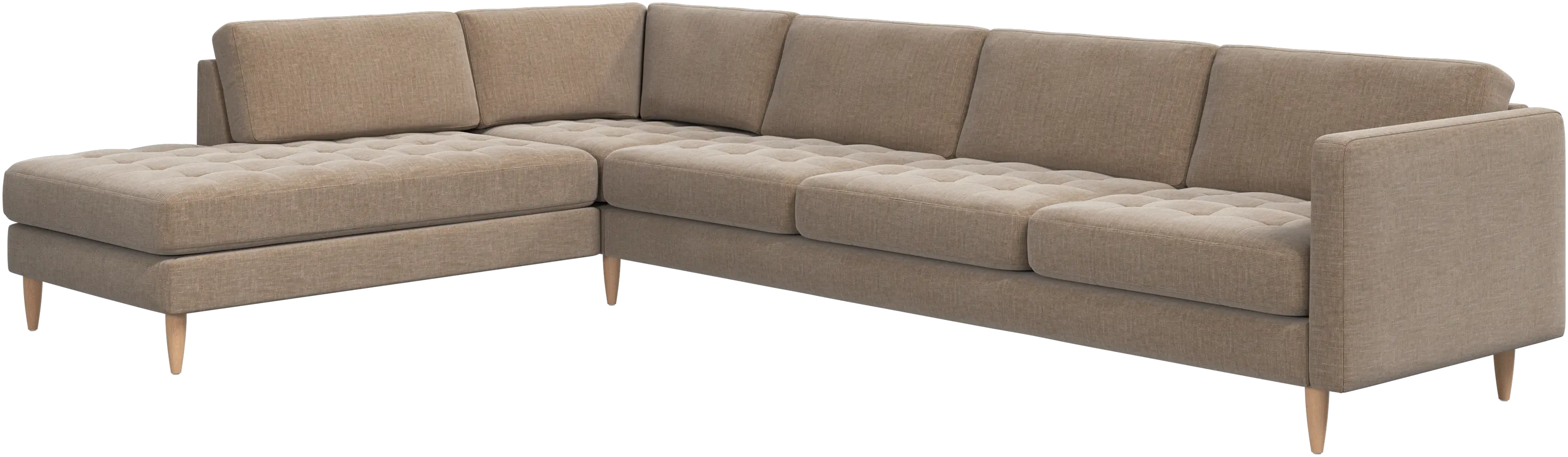 A light look and slim proportions make the Osaka sofa perfect for small homes, while a subtle feminine look and a touch of 60s design ensure that the Osaka sofa still packs a style punch. The beautiful tufted seats add visual softness and bring a classic look to your living room. The classic, straight armrests emphasise the clean lines and Scandinavian look. With plenty of room for the entire family this corner sofa will be the hero of your living room. The open end will create a dynamic, welcoming atmosphere - a true blessing for the integrated areas of open-plan living. Put your feet up, stretch out or use it as an extra seat – you won’t be sorry for choosing this comfortable chaise longue sofa.