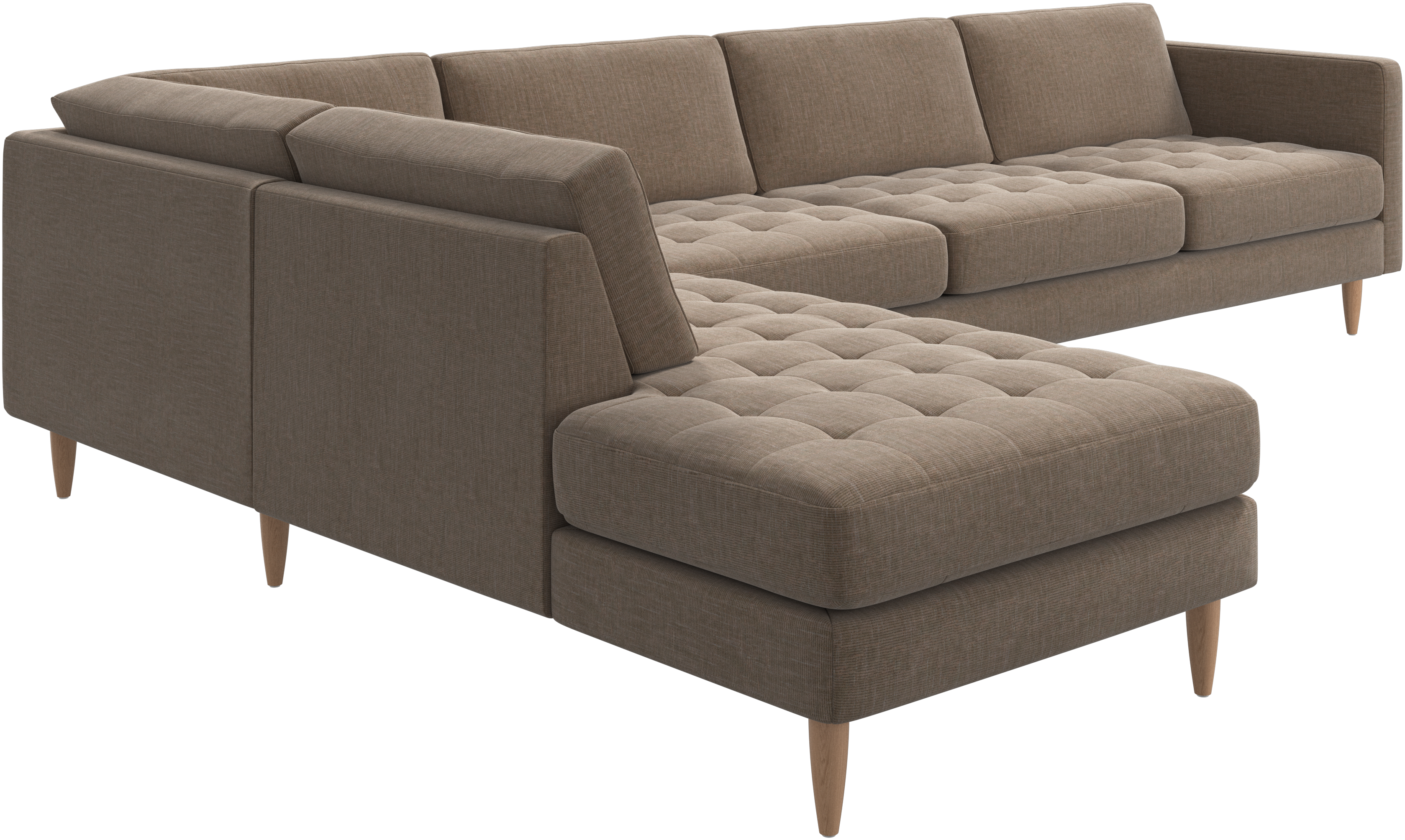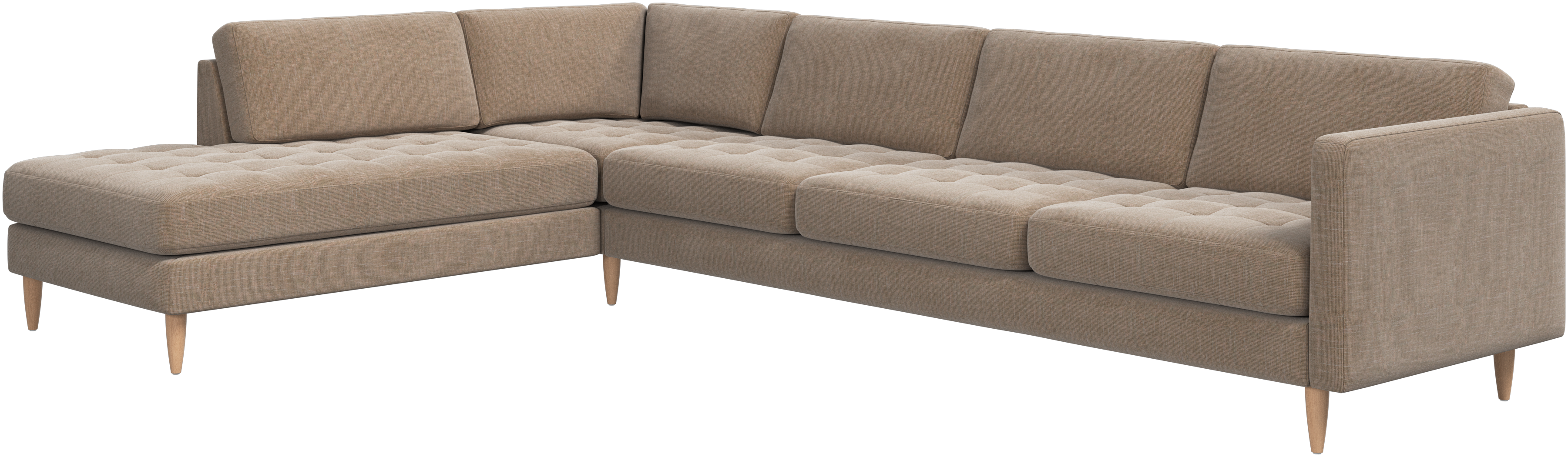 A light look and slim proportions make the Osaka sofa perfect for small homes, while a subtle feminine look and a touch of 60s design ensure that the Osaka sofa still packs a style punch. The beautiful tufted seats add visual softness and bring a classic look to your living room. The classic, straight armrests emphasise the clean lines and Scandinavian look. With plenty of room for the entire family this corner sofa will be the hero of your living room. The open end will create a dynamic, welcoming atmosphere - a true blessing for the integrated areas of open-plan living. Put your feet up, stretch out or use it as an extra seat – you won’t be sorry for choosing this comfortable chaise longue sofa.