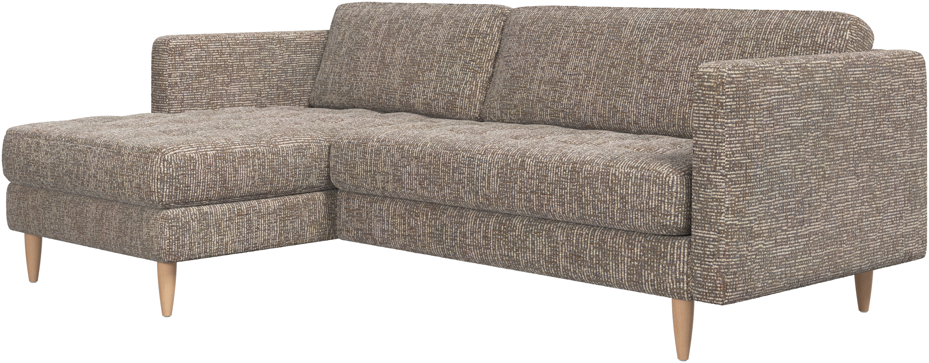 A light look and slim proportions make the Osaka sofa perfect for small homes, while a subtle feminine look and a touch of 60s design ensure that the Osaka sofa still packs a style punch. The beautiful tufted seats add visual softness and bring a classic look to your living room. The classic, straight armrests emphasise the clean lines and Scandinavian look. Put your feet up, stretch out or use it as an extra seat – you won’t be sorry for choosing this comfortable chaise longue sofa.
