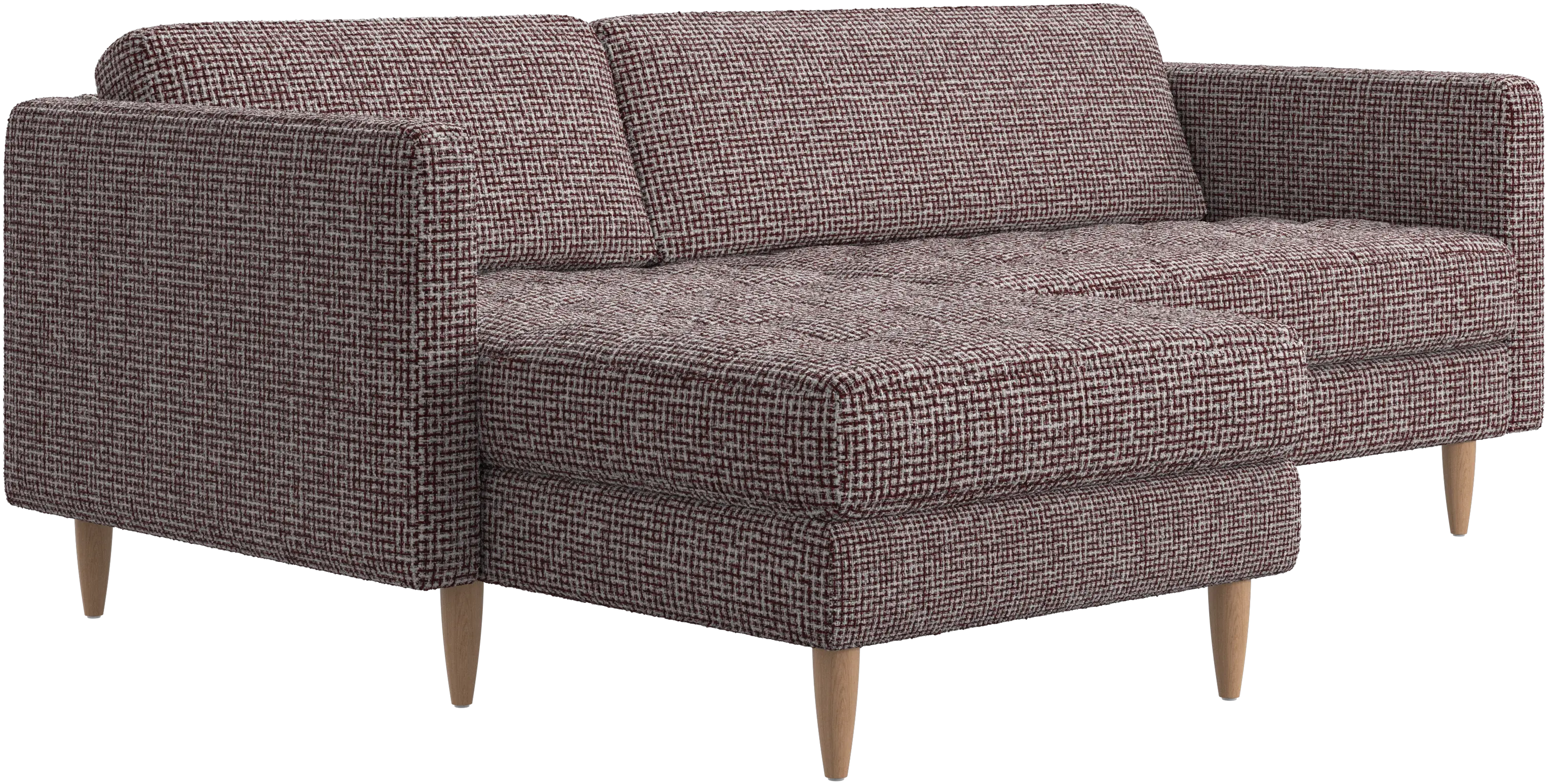 A light look and slim proportions make the Osaka sofa perfect for small homes, while a subtle feminine look and a touch of 60s design ensure that the Osaka sofa still packs a style punch. The beautiful tufted seats add visual softness and bring a classic look to your living room. The classic, straight armrests emphasise the clean lines and Scandinavian look. Put your feet up, stretch out or use it as an extra seat – you won’t be sorry for choosing this comfortable chaise longue sofa.