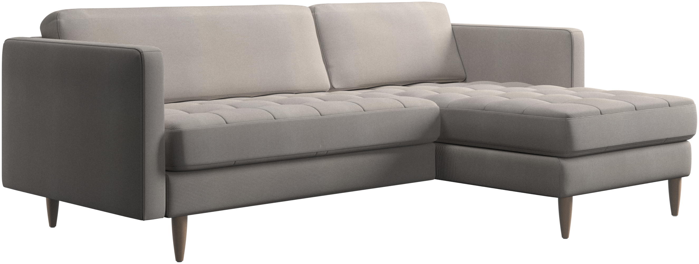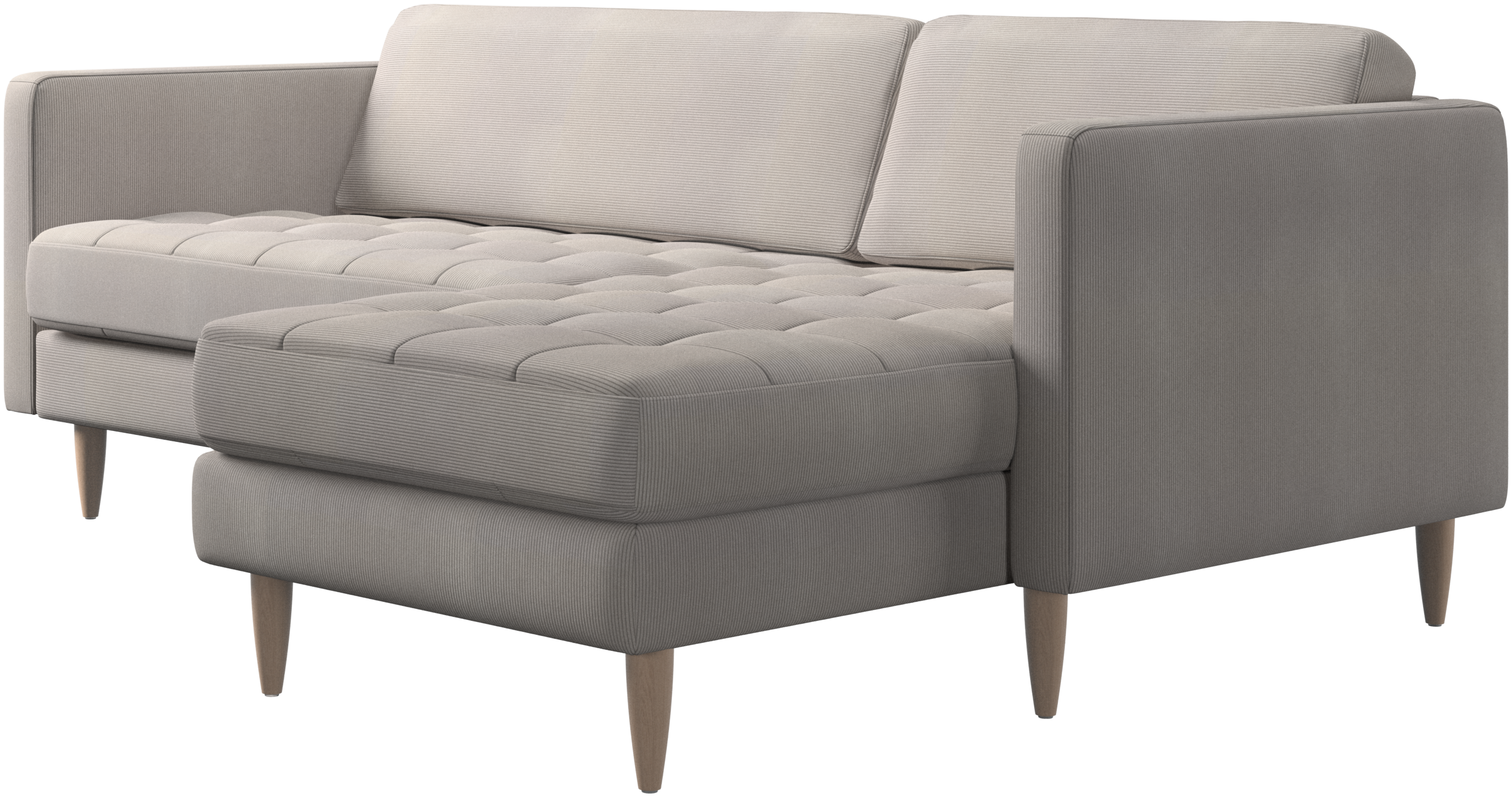 A light look and slim proportions make the Osaka sofa perfect for small homes, while a subtle feminine look and a touch of 60s design ensure that the Osaka sofa still packs a style punch. The beautiful tufted seats add visual softness and bring a classic look to your living room. The classic, straight armrests emphasise the clean lines and Scandinavian look. Put your feet up, stretch out or use it as an extra seat – you won’t be sorry for choosing this comfortable chaise longue sofa.
