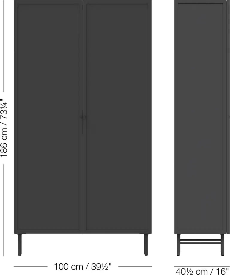 Supported by a slim yet strong matte black metal frame, this minimalist display cabinet blends seamlessly into any space.