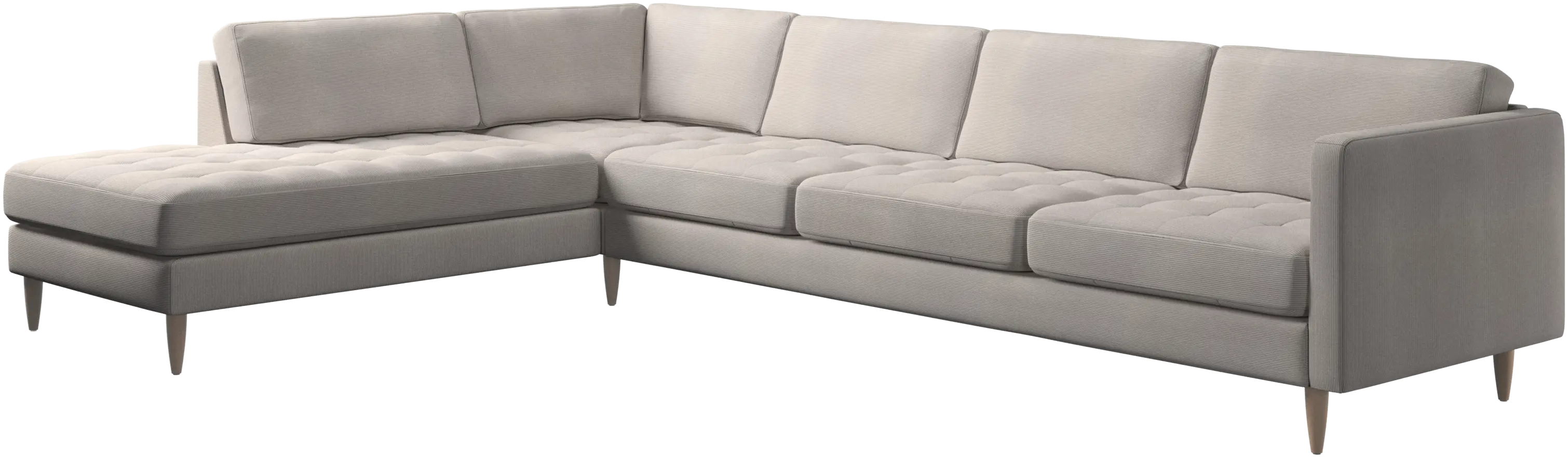 A light look and slim proportions make the Osaka sofa perfect for small homes, while a subtle feminine look and a touch of 60s design ensure that the Osaka sofa still packs a style punch. The beautiful tufted seats add visual softness and bring a classic look to your living room. The classic, straight armrests emphasise the clean lines and Scandinavian look. With plenty of room for the entire family this corner sofa will be the hero of your living room. The open end will create a dynamic, welcoming atmosphere - a true blessing for the integrated areas of open-plan living. Put your feet up, stretch out or use it as an extra seat – you won’t be sorry for choosing this comfortable chaise longue sofa.