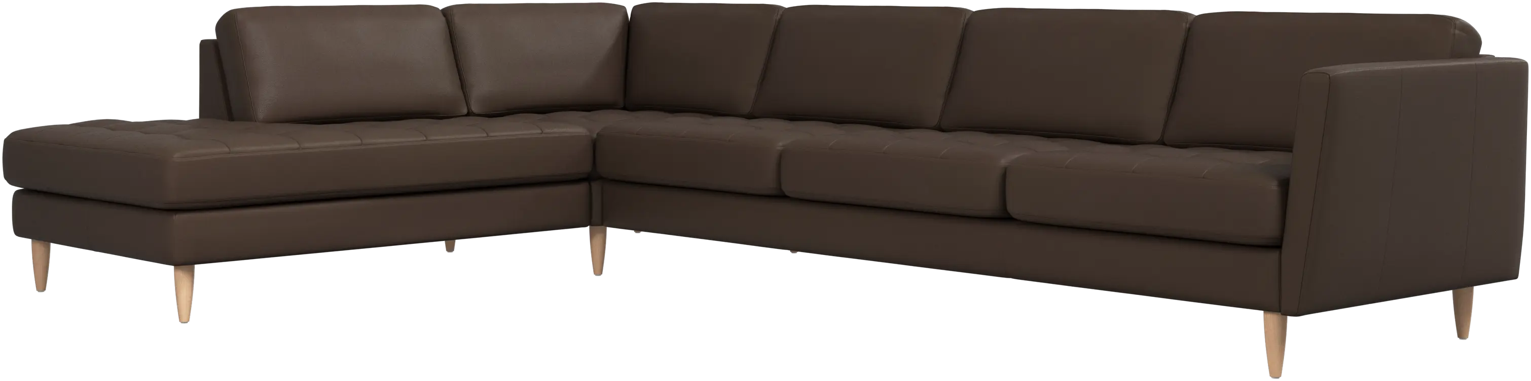 A light look and slim proportions make the Osaka sofa perfect for small homes, while a subtle feminine look and a touch of 60s design ensure that the Osaka sofa still packs a style punch. The beautiful tufted seats add visual softness and bring a classic look to your living room. Inclined armrests give the sofa a modern, unique look and open it up to the rest of the room. With plenty of room for the entire family this corner sofa will be the hero of your living room. The open end will create a dynamic, welcoming atmosphere - a true blessing for the integrated areas of open-plan living. Put your feet up, stretch out or use it as an extra seat – you won’t be sorry for choosing this comfortable chaise longue sofa.