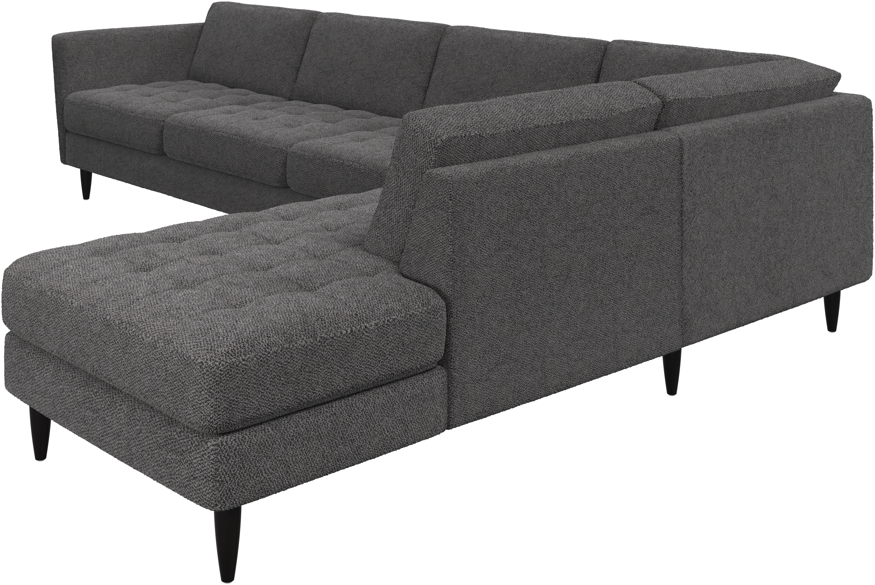 A light look and slim proportions make the Osaka sofa perfect for small homes, while a subtle feminine look and a touch of 60s design ensure that the Osaka sofa still packs a style punch. The beautiful tufted seats add visual softness and bring a classic look to your living room. Inclined armrests give the sofa a modern, unique look and open it up to the rest of the room. With plenty of room for the entire family this corner sofa will be the hero of your living room. The open end will create a dynamic, welcoming atmosphere - a true blessing for the integrated areas of open-plan living. Put your feet up, stretch out or use it as an extra seat – you won’t be sorry for choosing this comfortable chaise longue sofa.