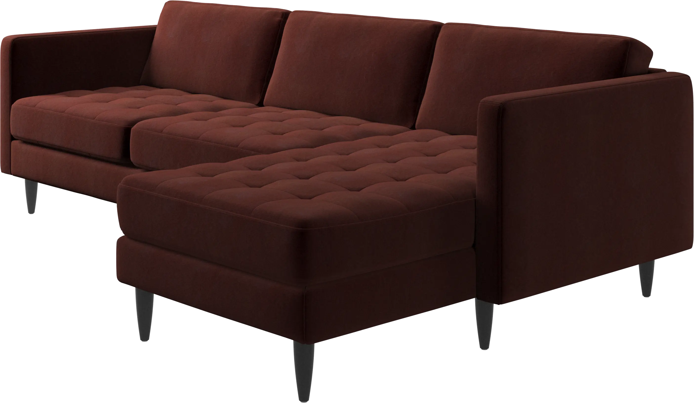 A light look and slim proportions make the Osaka sofa perfect for small homes, while a subtle feminine look and a touch of 60s design ensure that the Osaka sofa still packs a style punch. The beautiful tufted seats add visual softness and bring a classic look to your living room. The classic, straight armrests emphasise the clean lines and Scandinavian look. Put your feet up, stretch out or use it as an extra seat – you won’t be sorry for choosing this comfortable chaise longue sofa.