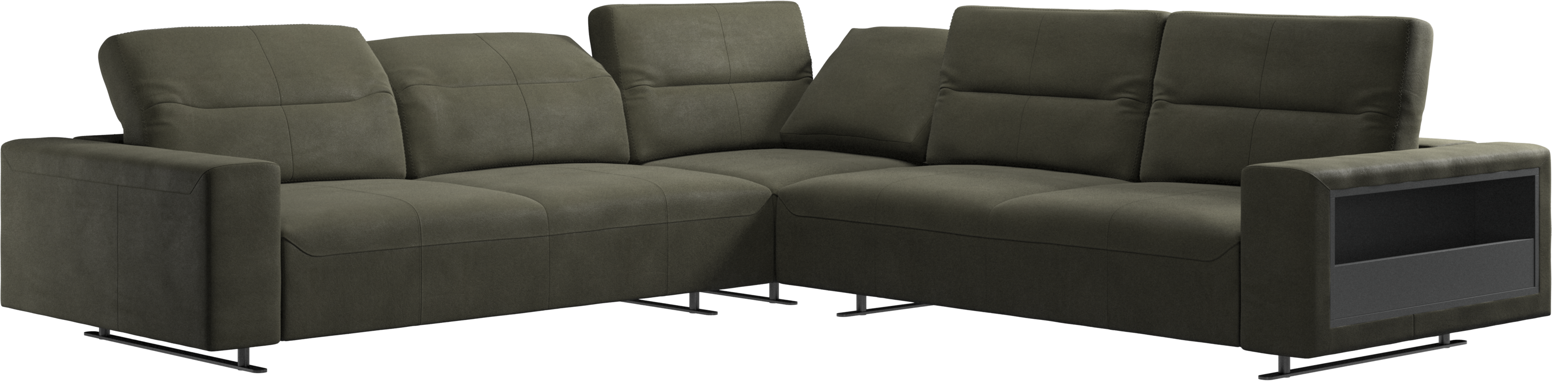 We know. It’s beautiful. But the modern Hampton sofa is much more than just good looks. A low base, a stunning loft look, adjustable backrests for comfort and visual impact – the Hampton sofa is the perfect personal retreat. With plenty of room for the entire family this corner sofa will be the hero of your living room. And with clever built-in storage in the armrest, you will always have your living room essentials at hand.