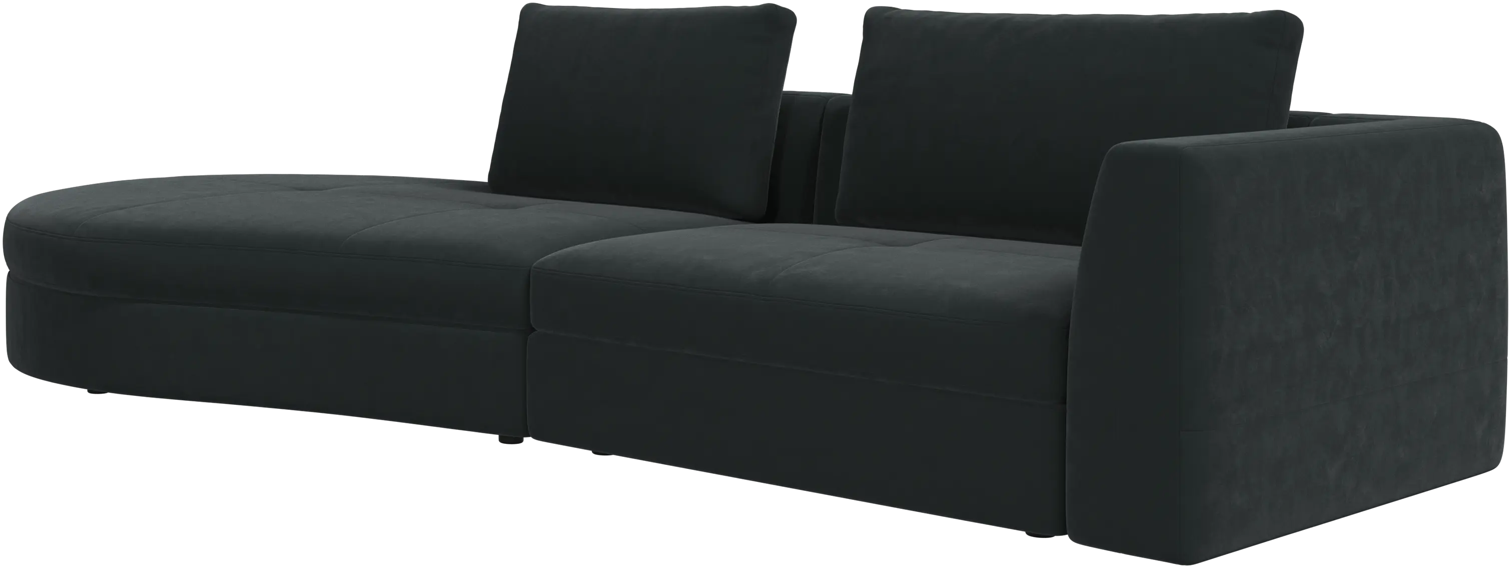 The Bergamo sofa is crafted with low, discrete legs that create a light, 'floating’ look.