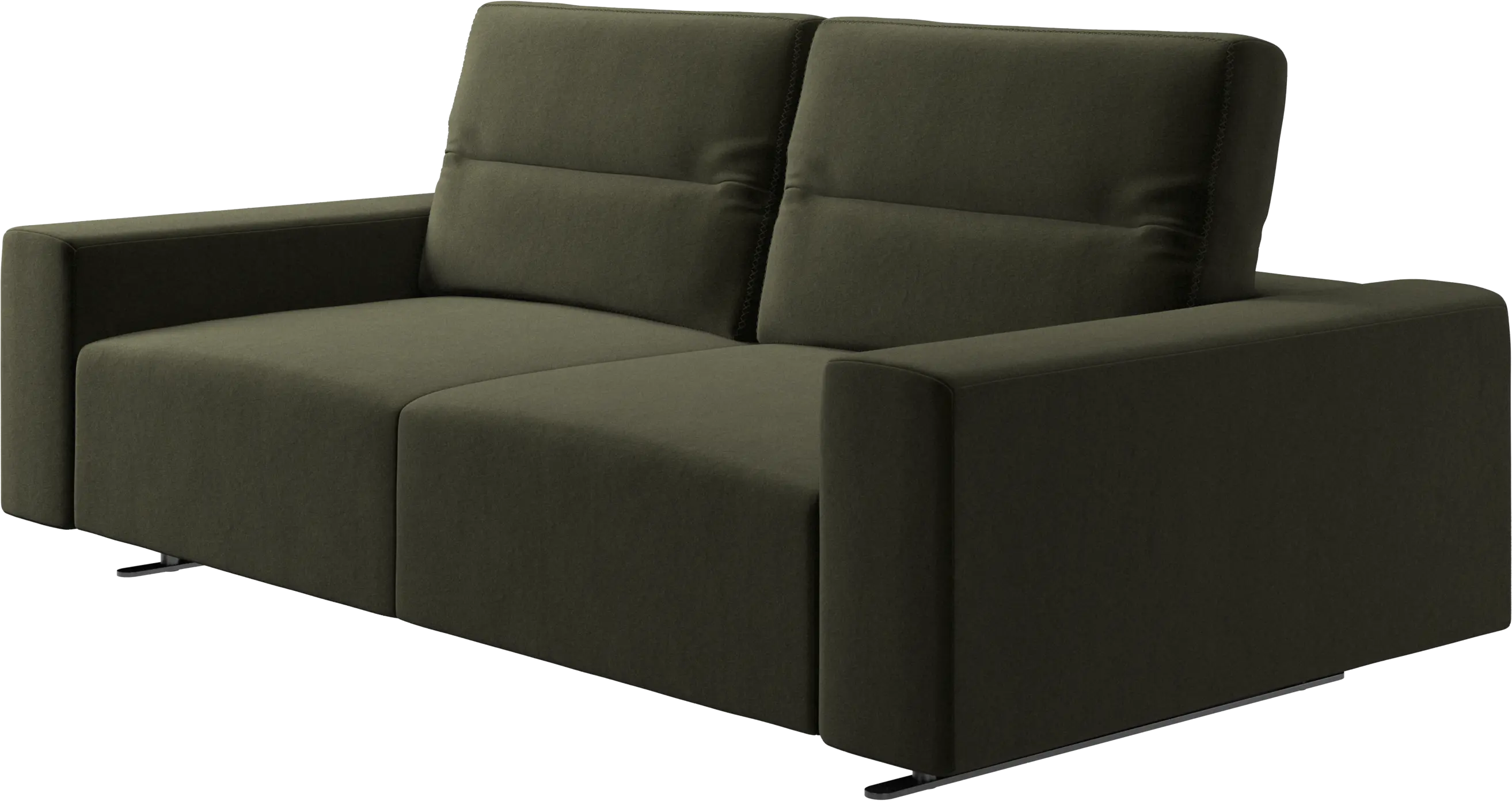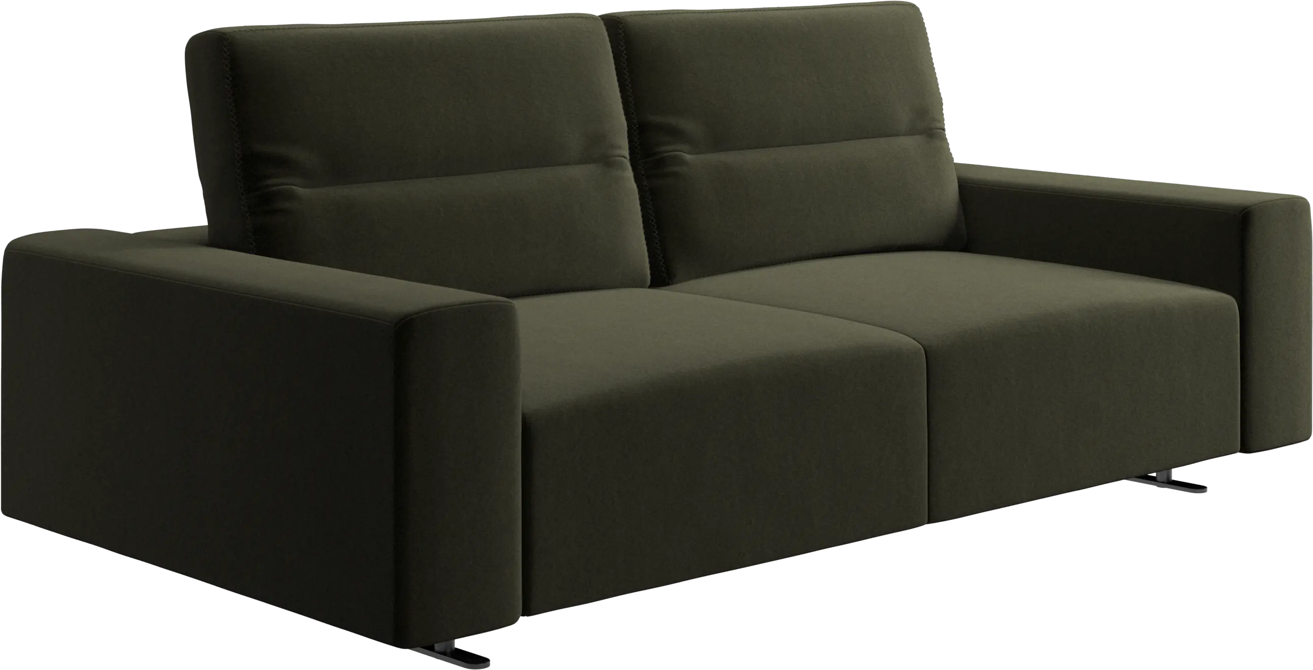 The total depth of the seat is 107 cm meaning wide enough to sleep on. To ensure optimal support despite this deep seating area, a lumbar cushion and a scatter cushion are available in coordinated fabrics and leathers.